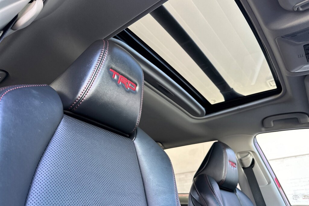 18" Split 5-Spoke Alloy Wheels, 4-Wheel Disc Brakes, 6 Speakers, ABS brakes, Air Conditioning, All Weather Floor Mats w/Cargo Tray, Alloy wheels, AM/FM radio: SiriusXM, Apple CarPlay/Android Auto, Auto High-beam Headlights, Automatic temperature control, Axle Ratio: 3.177, Brake assist, Bumpers: body-color, Delay-off headlights, Driver door bin, Driver vanity mirror, Dual front impact airbags, Dual front side impact airbags, Electronic Stability Control, Emergency communication system: Safety Connect with 1-year trial, Exterior Parking Camera Rear, Four wheel independent suspension, Front anti-roll bar, Front Bucket Seats, Front Center Armrest, Front Door Smart Key System w/Push Button Start, Front dual zone A/C, Front fog lights, Front reading lights, Fully automatic headlights, Heated door mirrors, Illuminated entry, Knee airbag, Low tire pressure warning, Occupant sensing airbag, Outside temperature display, Overhead airbag, Overhead console, Panic alarm, Passenger door bin, Passenger vanity mirror, Power door mirrors, Power driver seat, Power Liftgate, Power moonroof, Power steering, Power windows, Radio data system, Radio: Audio Plus, Rear anti-roll bar, Rear seat center armrest, Rear window defroster, Rear window wiper, Remote keyless entry, Roof rack: rails only, Security system, SofTex TRD Off Road Seat Trim, Speed control, Speed-sensing steering, Split folding rear seat, Spoiler, Steering wheel mounted audio controls, Tachometer, Telescoping steering wheel, Tilt & Slide Moon Roof, Tilt steering wheel, Traction control, Trip computer, Turn signal indicator mirrors, and Variably intermittent wipers.