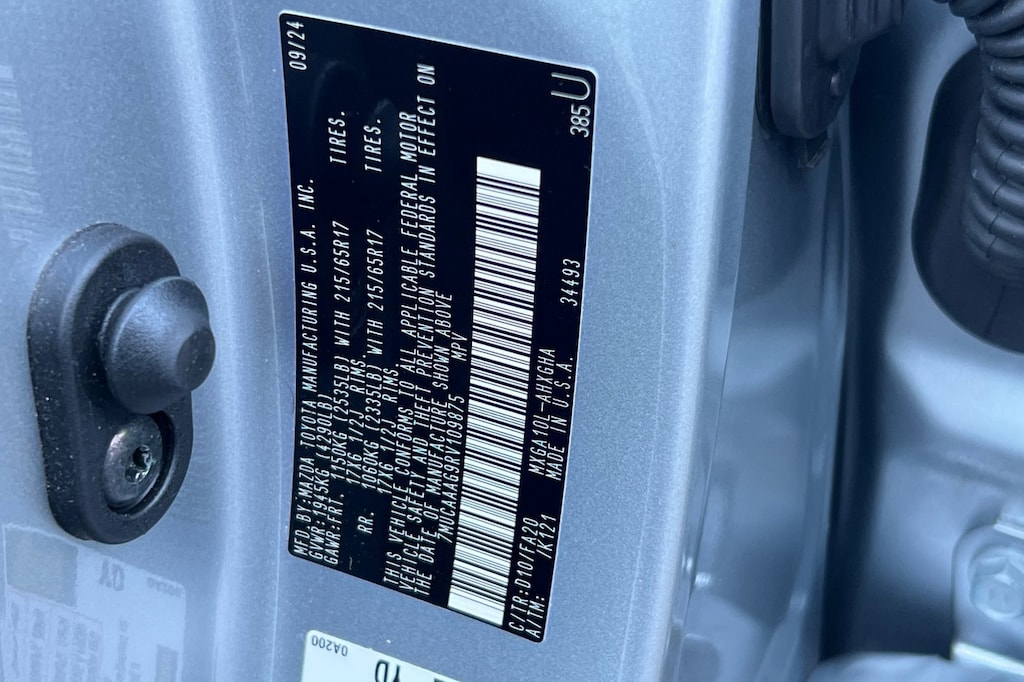 17" Silver Alloy Wheels, 4-Wheel Disc Brakes, 4.014 Axle Ratio, 6 Speakers, ABS brakes, Air Conditioning, Alloy wheels, AM/FM radio: SiriusXM, Auto High-beam Headlights, Automatic temperature control, Brake assist, Bumpers: body-color, Delay-off headlights, Driver door bin, Driver vanity mirror, Dual front impact airbags, Dual front side impact airbags, Electronic Stability Control, Emergency communication system: Safety Connect (10-year trial), Exterior Parking Camera Rear, Fabric Seat Trim, Front anti-roll bar, Front Bucket Seats, Front Center Armrest, Front reading lights, Front wheel independent suspension, Fully automatic headlights, Heated door mirrors, Illuminated entry, Knee airbag, Leather steering wheel, Low tire pressure warning, Occupant sensing airbag, Outside temperature display, Overhead airbag, Panic alarm, Passenger door bin, Passenger vanity mirror, Power door mirrors, Power steering, Power windows, Radio data system, Radio: 8" Touch-Screen Display Audio, Rear anti-roll bar, Rear side impact airbag, Rear window defroster, Rear window wiper, Remote keyless entry, Speed control, Split folding rear seat, Spoiler, Steering wheel mounted audio controls, Tachometer, Telescoping steering wheel, Tilt steering wheel, Traction control, Trip computer, Turn signal indicator mirrors, and Variably intermittent wipers.