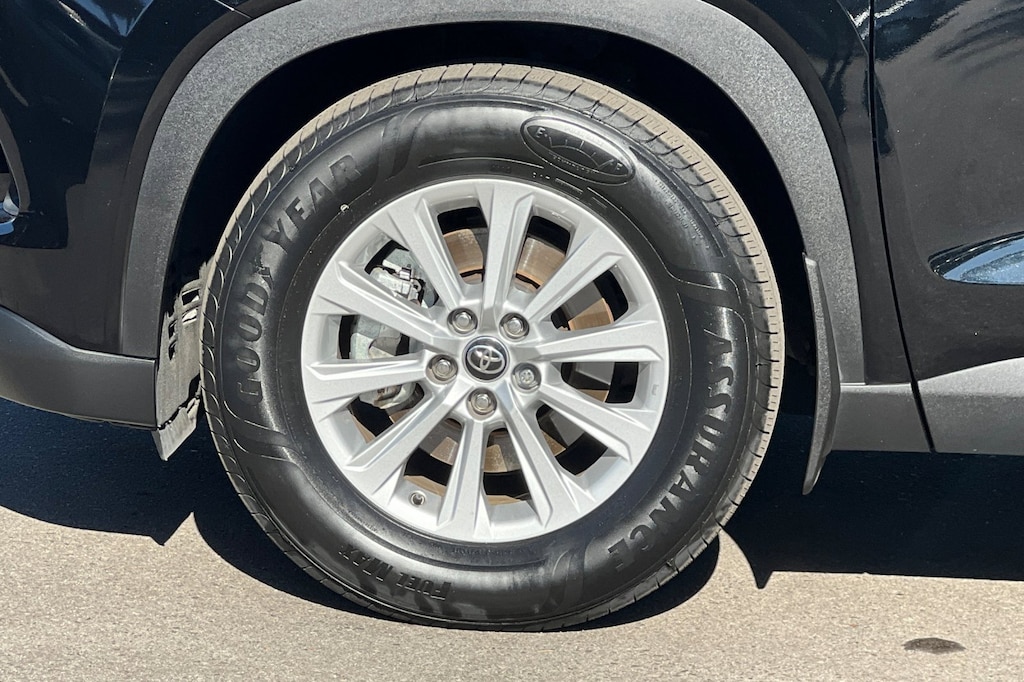 18" Aluminum Alloy Wheels, 3rd row seats: split-bench, 4-Wheel Disc Brakes, 6 Speakers, ABS brakes, Air Conditioning, Alloy wheels, AM/FM radio: SiriusXM, Apple CarPlay/Android Auto, Auto High-beam Headlights, Auto-dimming Rear-View mirror, Automatic temperature control, Brake assist, Bumpers: body-color, Delay-off headlights, Driver door bin, Driver vanity mirror, Dual front impact airbags, Dual front side impact airbags, Electronic Stability Control, Emergency communication system: Safety Connect (up to 10-year trial subscription), Exterior Parking Camera Rear, Four wheel independent suspension, Front anti-roll bar, Front Bucket Seats, Front Center Armrest, Front dual zone A/C, Front reading lights, Fully automatic headlights, Garage door transmitter: HomeLink, Heated door mirrors, Heated Front Seats, Heated front seats, Illuminated entry, Knee airbag, Leather Shift Knob, Leather steering wheel, Low tire pressure warning, Navigation system: Drive Connect Cloud Navigation (1-year trial subscription), Occupant sensing airbag, Outside temperature display, Overhead airbag, Overhead console, Panic alarm, Passenger door bin, Passenger vanity mirror, Power door mirrors, Power driver seat, Power Liftgate, Power passenger seat, Power steering, Power windows, Radio: 12.3" Toyota Audio Multimedia, Rear air conditioning, Rear anti-roll bar, Rear reading lights, Rear window defroster, Rear window wiper, Reclining 3rd row seat, Remote keyless entry, Security system, SofTex Seat Trim, Speed control, Speed-sensing steering, Split folding rear seat, Spoiler, Steering wheel mounted audio controls, TBD Axle Ratio, Telescoping steering wheel, Tilt steering wheel, Traction control, Trip computer, Turn signal indicator mirrors, and Variably intermittent wipers.