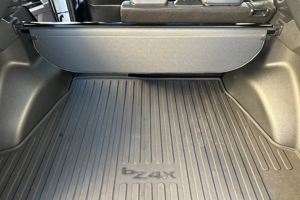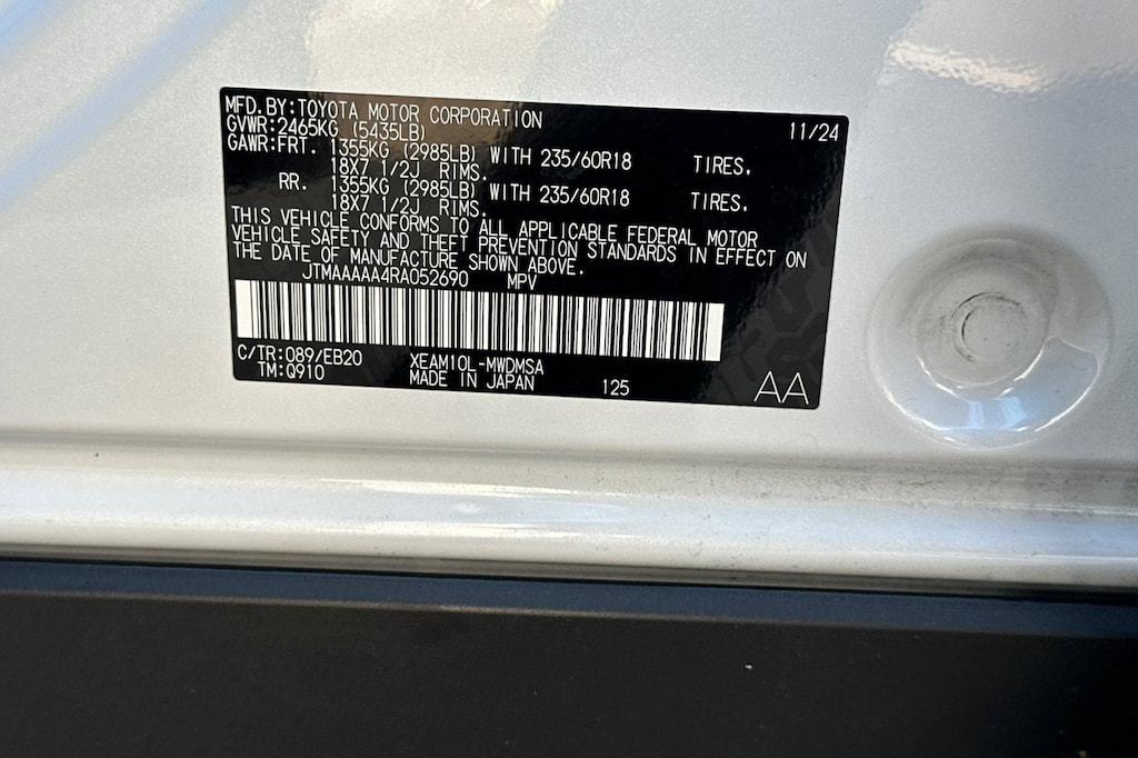 4-Wheel Disc Brakes, 6 Speakers, ABS brakes, Air Conditioning, Alloy wheels, AM/FM radio: SiriusXM, Apple CarPlay/Android Auto, Auto High-beam Headlights, Auto-dimming Rear-View mirror, Automatic temperature control, Brake assist, Bumpers: body-color, Delay-off headlights, Driver door bin, Driver vanity mirror, Dual front impact airbags, Dual front side impact airbags, Electronic Stability Control, Emergency communication system: Safety Connect (10-year trial), Exterior Parking Camera Rear, Fabric & SofTex Seat Trim, Four wheel independent suspension, Front anti-roll bar, Front Bucket Seats, Front Center Armrest, Front dual zone A/C, Front reading lights, Front Seats, Fully automatic headlights, Heated door mirrors, Illuminated entry, Knee airbag, Leather steering wheel, Low tire pressure warning, Navigation system: Drive Connect (3 year trial) includes Cloud Navigation with real time traffic and Google POI, Occupant sensing airbag, Outside temperature display, Overhead airbag, Overhead console, Panic alarm, Passenger door bin, Passenger vanity mirror, Power door mirrors, Power driver seat, Power Liftgate, Power steering, Power windows, Radio data system, Radio: 12.3" Toyota Audio Multimedia w/6 Speakers, Rain sensing wipers, Rear anti-roll bar, Rear seat center armrest, Rear window defroster, Remote keyless entry, Security system, Speed control, Speed-sensing steering, Split folding rear seat, Spoiler, Steering wheel mounted audio controls, Telescoping steering wheel, Tilt steering wheel, Traction control, Trip computer, Turn signal indicator mirrors, Variably intermittent wipers, and Wheels: 18" Alloy w/Two-Tone Covers.