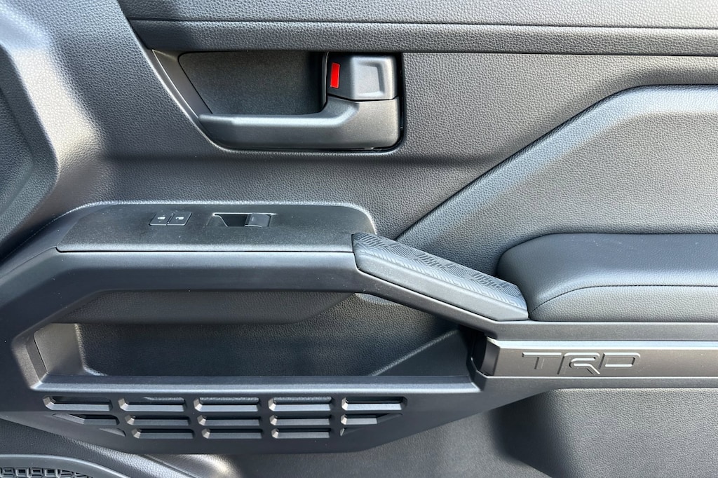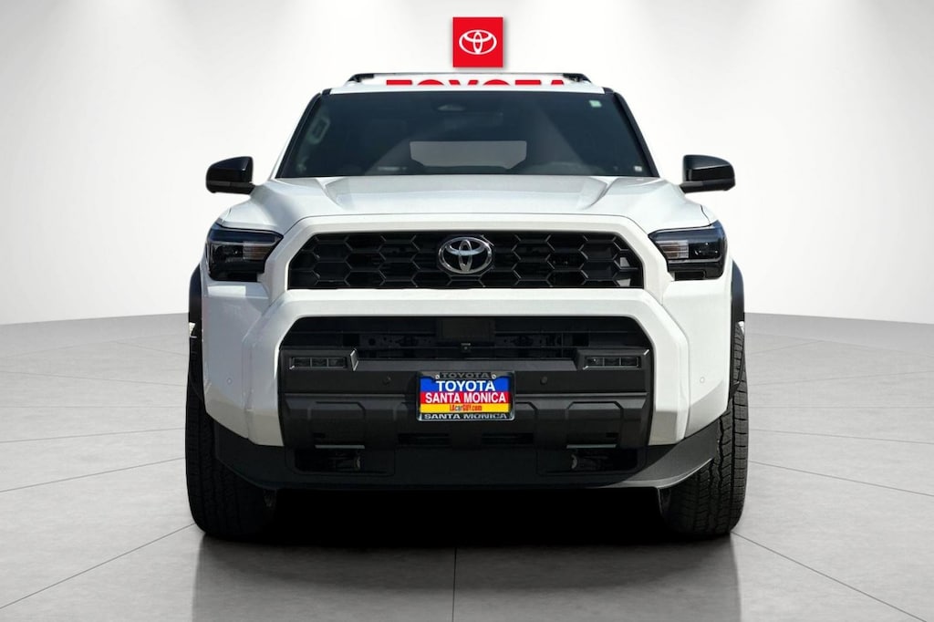 - Black honeycomb-style grille, mirror caps, door handles, and overfenders color-keyed rear spoiler black 'TRD OFF ROAD' and '4RUNNER' badges