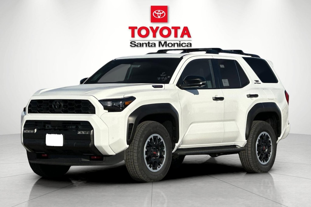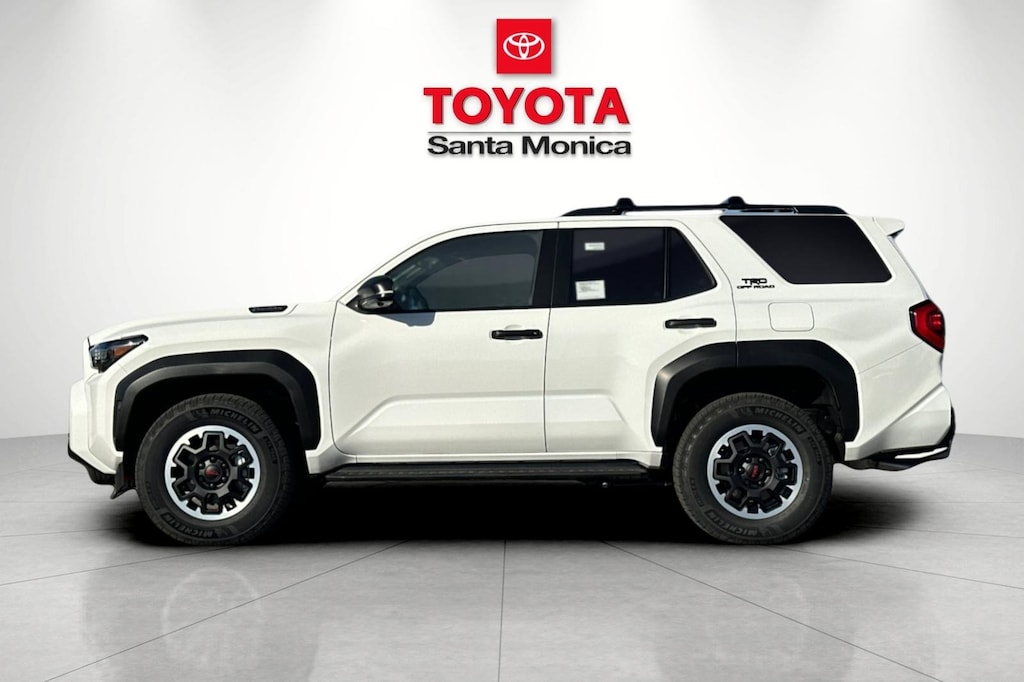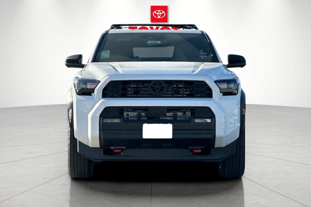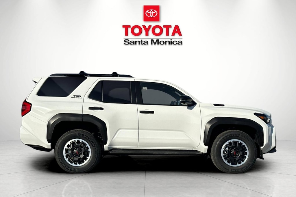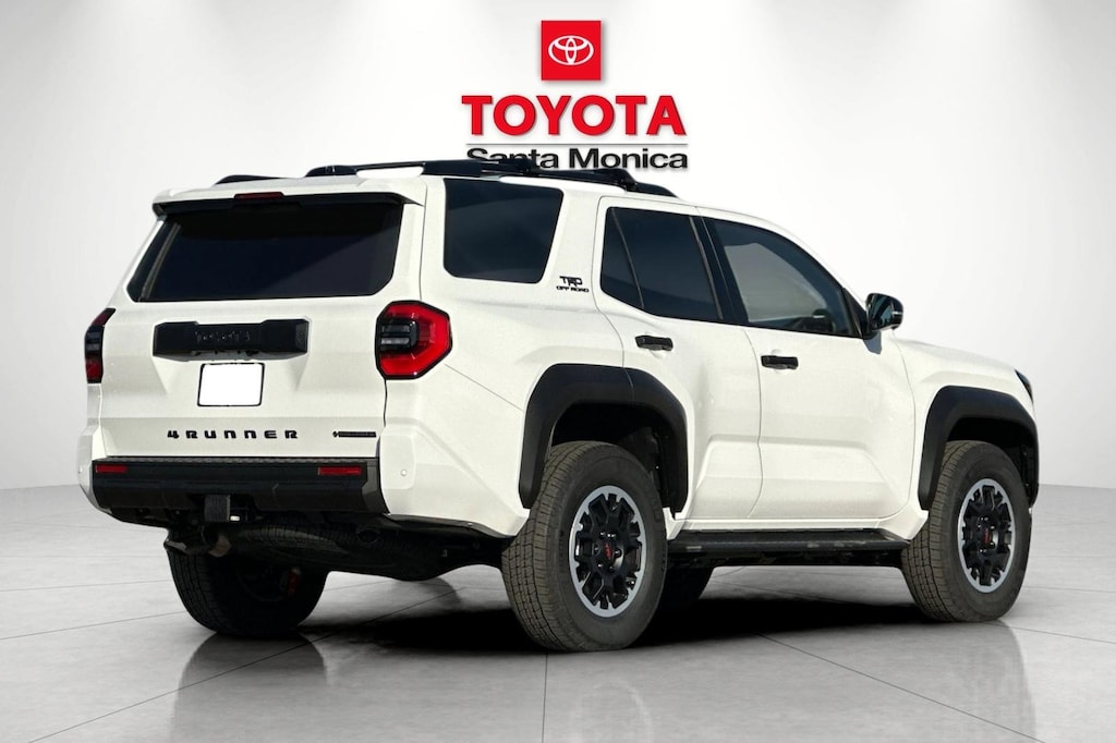 - Black honeycomb-style grille, mirror caps, door handles, and overfenders color-keyed rear spoiler black 'TRD OFF ROAD' and '4RUNNER' badges
