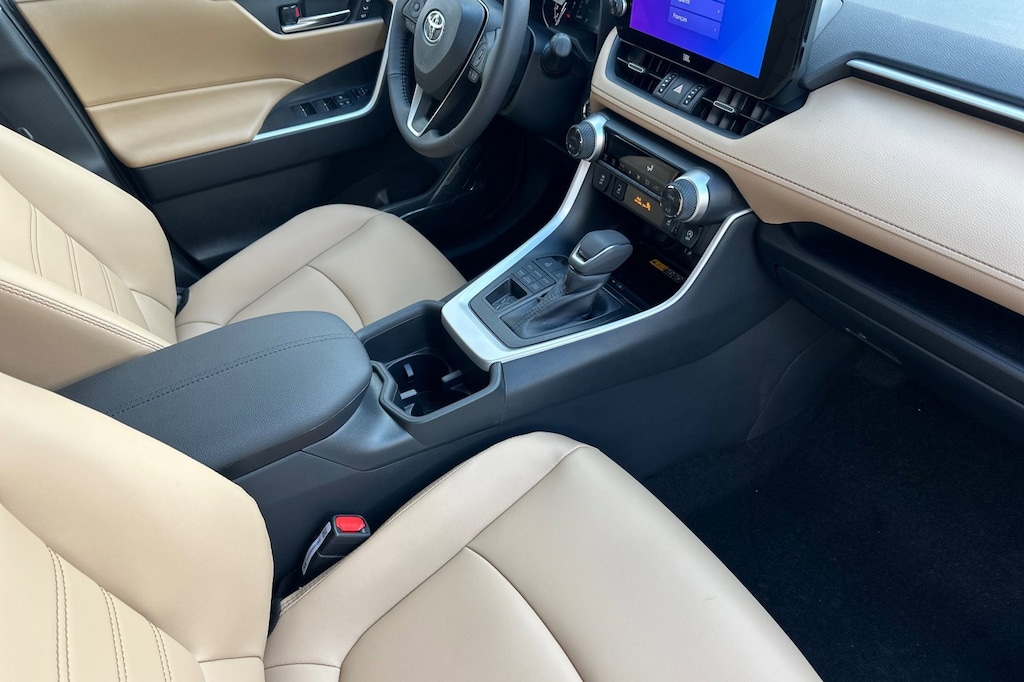 - Center console with covered storage compartment, two cup holders, drive mode, Multi-Terrain Select (MTS), Electric Parking Brake (EPB) and automatic Brake Hold controls, and front storage tray