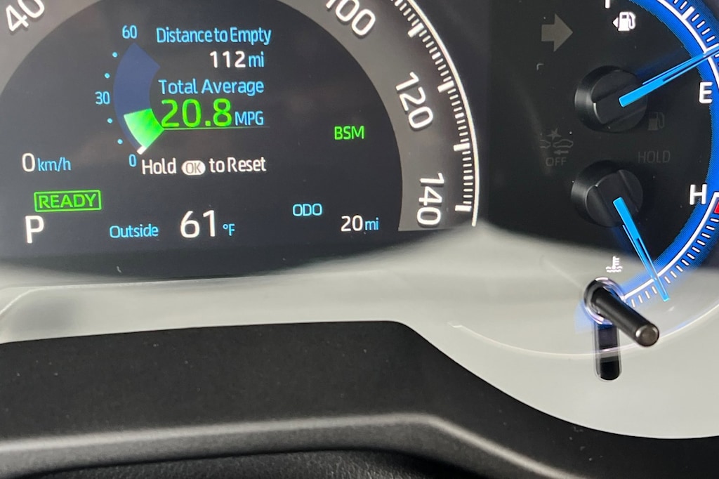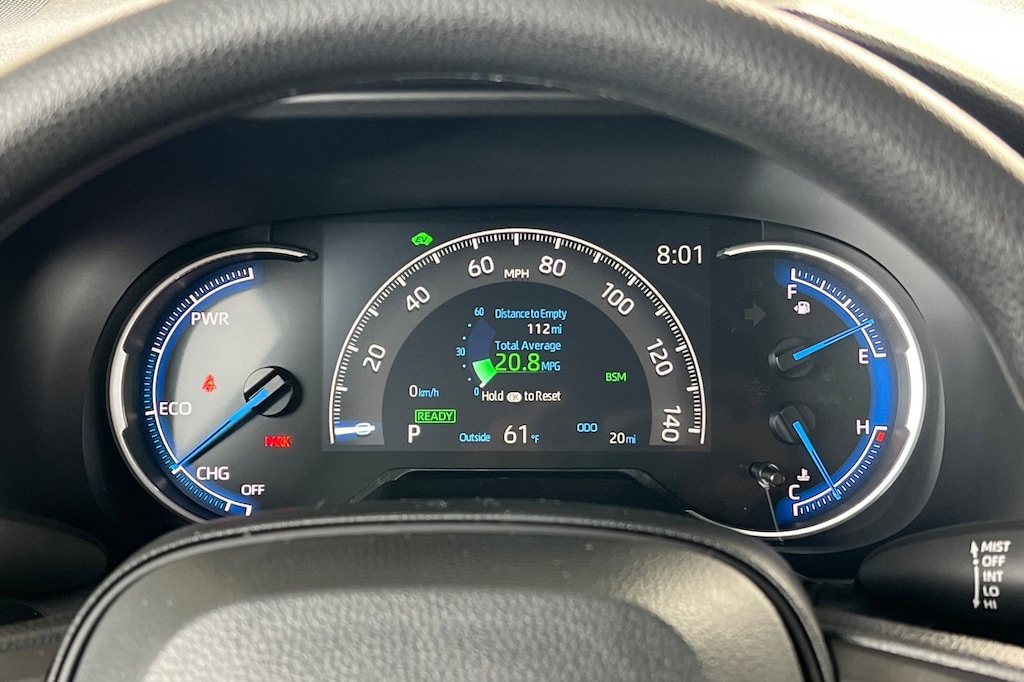 - Digital speedometer and instrumentation with analog hybrid power meter, coolant temperature, and fuel gauges 7-in. digital Multi-Information Display (MID) with customizable settings, odometer, tripmeters, clock, outside temperature, rear passenger seatbelt indicators, hybrid energy monitor, fuel economy information, trip timer, shift-position and scheduled maintenance indicators, and warning messages