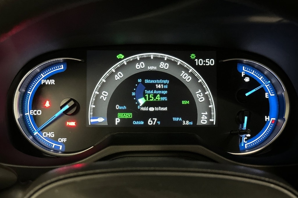 - Digital speedometer and instrumentation with analog hybrid power meter, coolant temperature, and fuel gauges 7-in. digital Multi-Information Display (MID) with customizable settings, odometer, tripmeters, clock, outside temperature, rear passenger seatbelt indicators, hybrid energy monitor, fuel economy information, trip timer, shift-position and scheduled maintenance indicators, and warning messages
