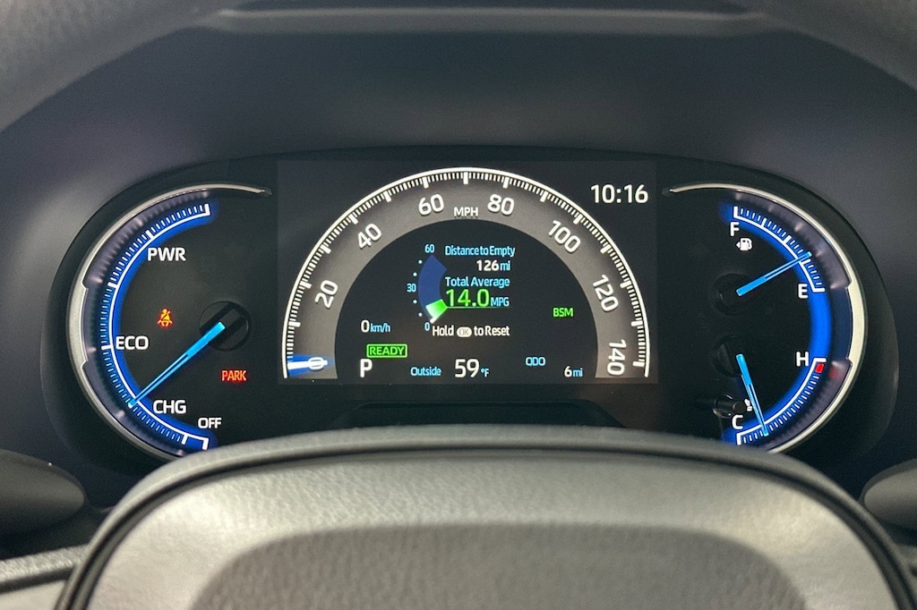 - Digital speedometer and instrumentation with analog hybrid power meter, coolant temperature, and fuel gauges 7-in. digital Multi-Information Display (MID) with customizable settings, odometer, tripmeters, clock, outside temperature, rear passenger seatbelt indicators, hybrid energy monitor, fuel economy information, trip timer, shift-position and scheduled maintenance indicators, and warning messages
