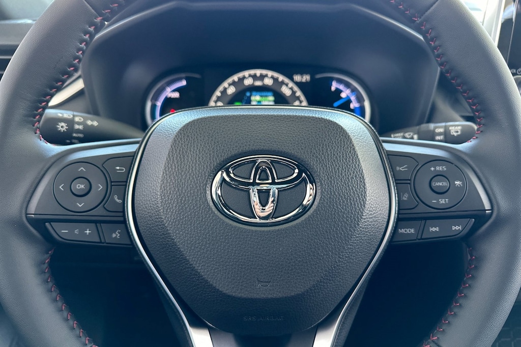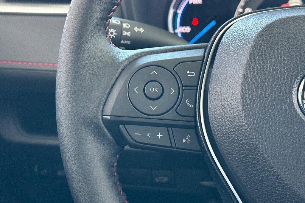 - Leather-trimmed tilt/telescopic 3-spoke steering wheel with silver accent and red-stitching, and controls for audio, Multi-Information Display (MID), Bluetooth (R) hands-free phone, voice-command, Dynamic Radar Cruise Control (DRCC), Lane Departure Alert (LDA) and Lane Trace Assist (LTA)