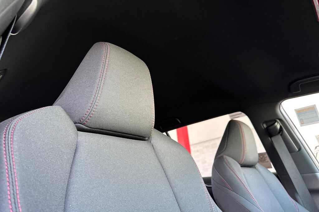 - Fabric-trimmed seats with sporty red stitching and embossed seat inserts heated front seats 8-way power-adjustable front driver's seat with lumbar support 4-way adjustable front passenger seat with seatback pocket