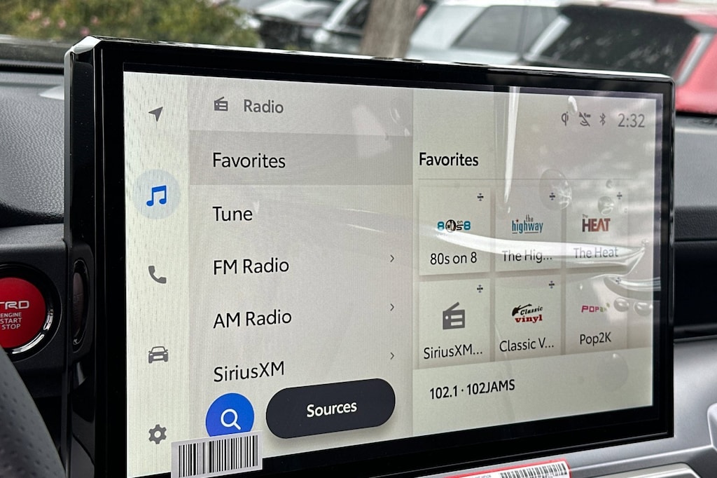 - 14-in. Audio multimedia display with 14-speaker jbl®premium audio system including jbl®flex portable. Bluetooth. ®speaker, subwoofer and amplifier, wireless apple carplay®& android auto™compatibility, siriusxm®3-month trial. See toyota.Com/connected-services for details.Jbl® is a registered trademark of harman international industries, inc.,Jbl® is a registered trademark of harman international industries, inc.,A compatible. Bluetooth. ®-enabled phone must first be paired. Phone performance depends on software, coverage and carrier. The. Bluetooth. ® word mark and logos are registered trademarks of bluetooth sig, inc. Use of such marks by toyota is under license.,Apple carplay® requires a compatible iphone® with an active data plan. Check compatibility at. Https://www.Apple.Com/ios/carplay/. . Operability depends on network availability, a cellular connection and gps signal. Services vary by vehicle and are subject to change at any time without notice. Data charges may apply. To learn more, go to. Https://www.Toyota.Com/audio-multimedia/. . To learn more about toyota connected services data collection, use, sharing and retention practices, please visit. Https://www.Toyota.Com/support/privacy-notice/. . Apple carplay® is a registered trademark of apple inc.,Wireless use of android auto requires a compatible android 11.0+ phone and compatible active data plan. Check. G.Co/androidauto/requirements. For compatibility. Operability depends on network availability, a cellular connection, and gps signal. Services vary by vehicle and are subject to change at any time without notice. Data charges may apply. To learn more, go to. Https://www.Toyota.Com/audio-multimedia/. . To learn more about toyota's connected services data collection, use, sharing, and retention practices, please visit. Https://www.Toyota.Com/support/privacy-notice/. . Google, android, android auto, google maps and other marks are trademarks of google llc. Compatible android phone and compatible active data plan required.,Service will automatically stop at the end of your trial subscription period unless you decide to continue service. Trial is non-transferable. If you do not wish to enjoy your trial, you can cancel by calling the number below. All siriusxm services require a subscription, each sold separately by siriusxm after the trial period. Service subject to the siriusxm customer agreement and privacy policy, visit siriusxm.Com for complete terms and how to cancel which includes online methods or calling 1-866-635-2349. Some services and features are subject to device capabilities and location availability. Satellite service not available in ak & hi. Content varies by siriusxm subscription plan. All fees, content and features are subject to change. Siriusxm and related logos are trademarks of sirius xm radio inc. And its respective subsidiaries.