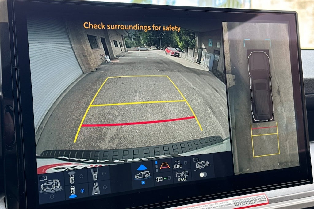 - Integrated backup camera display with projected path.The backup camera does not provide a comprehensive view. Always look over shoulder and use outside mirrors. See. Owner's. Manual. For limitations.