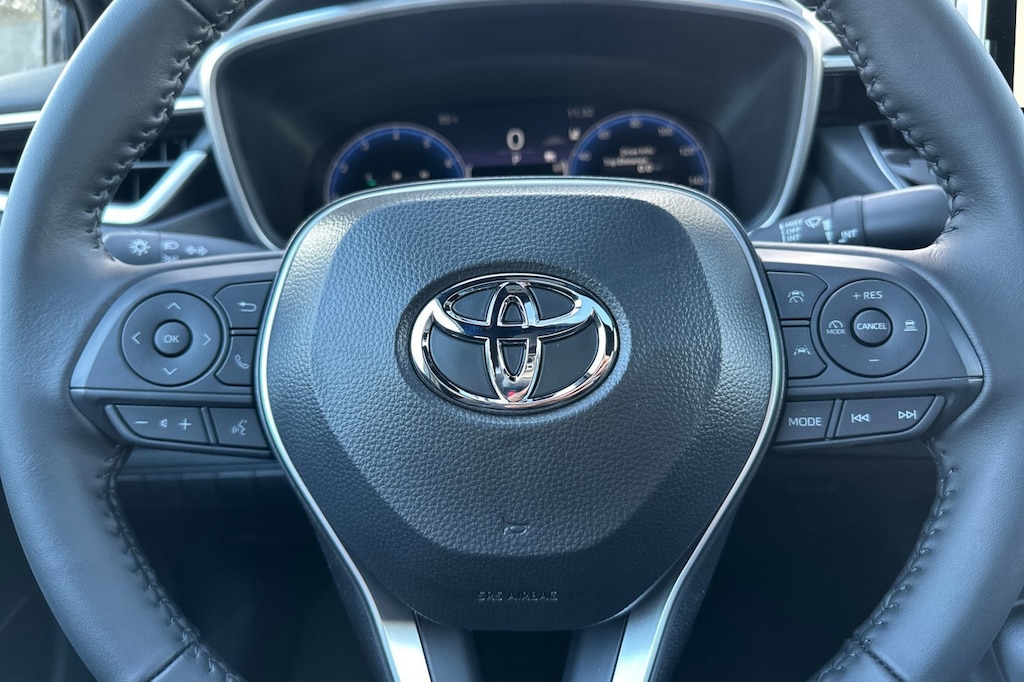 - Leather-trimmed tilt/telescopic 3-spoke steering wheel with paddle shifters and audio, multi-information display (mid), Bluetooth. ®hands-free phone, voice-command, full-speed range dynamic radar cruise control (drcc),lane departure alert with steering assist (lda w/sa)controls.A compatible. Bluetooth. ®-enabled phone must first be paired. Phone performance depends on software, coverage and carrier. The. Bluetooth. ® word mark and logos are registered trademarks of bluetooth sig, inc. Use of such marks by toyota is under license.,Full-speed range dynamic radar cruise control is not a substitute for safe and attentive driving. See. Owner’s manual. For instructions and limitations.,Lane departure alert with steering assist is designed to read visible lane markers under certain conditions. It provides a visual/audible alert and slight steering force when lane departure is detected. It is not a collision-avoidance system or a substitute for safe and attentive driving. Effectiveness depends on many factors including road, weather and vehicle conditions. See. Owner’s. Manual. For limitations.