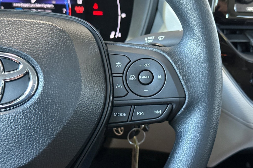 - Standard tilt/telescopic steering wheel with audio, Bluetooth. ®hands-free phone voice-command, full-speed range dynamic radar cruise control (drcc),lane departure alert (lda),lane tracing assist (lta)controls.A compatible. Bluetooth. ®-enabled phone must first be paired. Phone performance depends on software, coverage and carrier. The. Bluetooth. ® word mark and logos are registered trademarks of bluetooth sig, inc. Use of such marks by toyota is under license.,Full-speed range dynamic radar cruise control is not a substitute for safe and attentive driving. See. Owner’s manual. For instructions and limitations.,Lane departure alert with steering assist is designed to read visible lane markers under certain conditions. It provides a visual/audible alert and slight steering force when lane departure is detected. It is not a collision-avoidance system or a substitute for safe and attentive driving. Effectiveness depends on many factors including road, weather and vehicle conditions. See. Owner’s. Manual. For limitations.,The lane tracing assist (lta) lane centering function is designed to read visible lane markers and detect other vehicles under certain conditions. It is only operational when drcc is engaged. See. Owner's. Manual. For limitations.