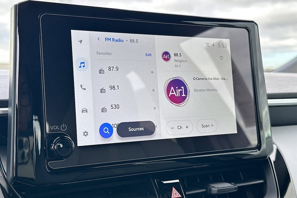 - 8-in. Toyota audio multimedia touchscreen with six speakers, wireless apple carplay®& android auto™compatibility, siriusxm®3-month trial subscription. See toyota.Com/audio-multimedia for details.Apple carplay® requires a compatible iphone® with an active data plan. Check compatibility at. Https://www.Apple.Com/ios/carplay/. . Operability depends on network availability, a cellular connection and gps signal. Services vary by vehicle and are subject to change at any time without notice. Data charges may apply. To learn more, go to. Https://www.Toyota.Com/audio-multimedia/. . To learn more about toyota connected services data collection, use, sharing and retention practices, please visit. Https://www.Toyota.Com/support/privacy-notice/. . Apple carplay® is a registered trademark of apple inc.,Wireless use of android auto requires a compatible android 11.0+ phone and compatible active data plan. Check. G.Co/androidauto/requirements. For compatibility. Operability depends on network availability, a cellular connection, and gps signal. Services vary by vehicle and are subject to change at any time without notice. Data charges may apply. To learn more, go to. Https://www.Toyota.Com/audio-multimedia/. . To learn more about toyota's connected services data collection, use, sharing, and retention practices, please visit. Https://www.Toyota.Com/support/privacy-notice/. . Google, android, android auto, google maps and other marks are trademarks of google llc. Compatible android phone and compatible active data plan required.,Service will automatically stop at the end of your trial subscription period unless you decide to continue service. Trial is non-transferable. If you do not wish to enjoy your trial, you can cancel by calling the number below. All siriusxm services require a subscription, each sold separately by siriusxm after the trial period. Service subject to the siriusxm customer agreement and privacy policy, visit siriusxm.Com for complete terms and how to cancel which includes online methods or calling 1-866-635-2349. Some services and features are subject to device capabilities and location availability. Satellite service not available in ak & hi. Content varies by siriusxm subscription plan. All fees, content and features are subject to change. Siriusxm and related logos are trademarks of sirius xm radio inc. And its respective subsidiaries.