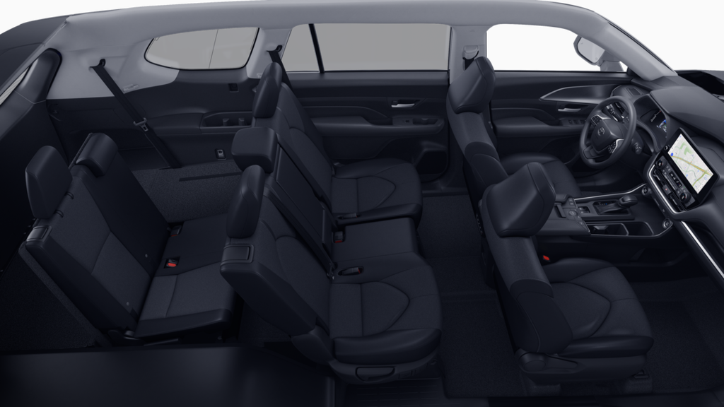 - 8-passenger seating with 60/40 split, sliding and reclining fold-down second-row bench seats; 60/40 split, fold-down third-row seats with sliding headrests and recline function.
