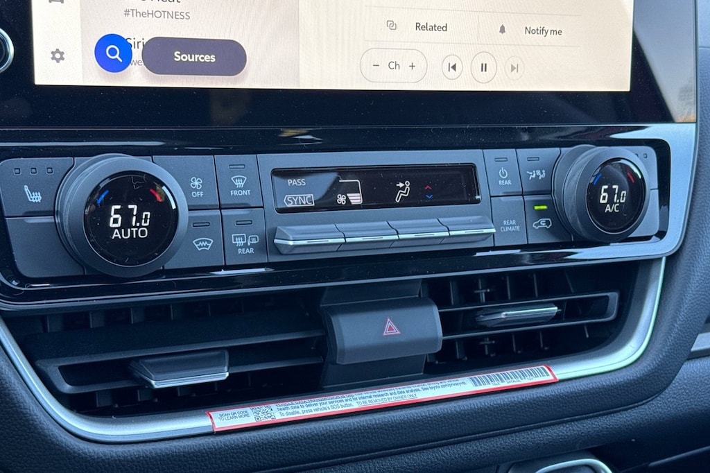 - Three-zone automatic climate control with air filter, separate second-row control panel, individual temperature settings for driver, front passenger and rear-seat passengers, and second- and third-row vents.