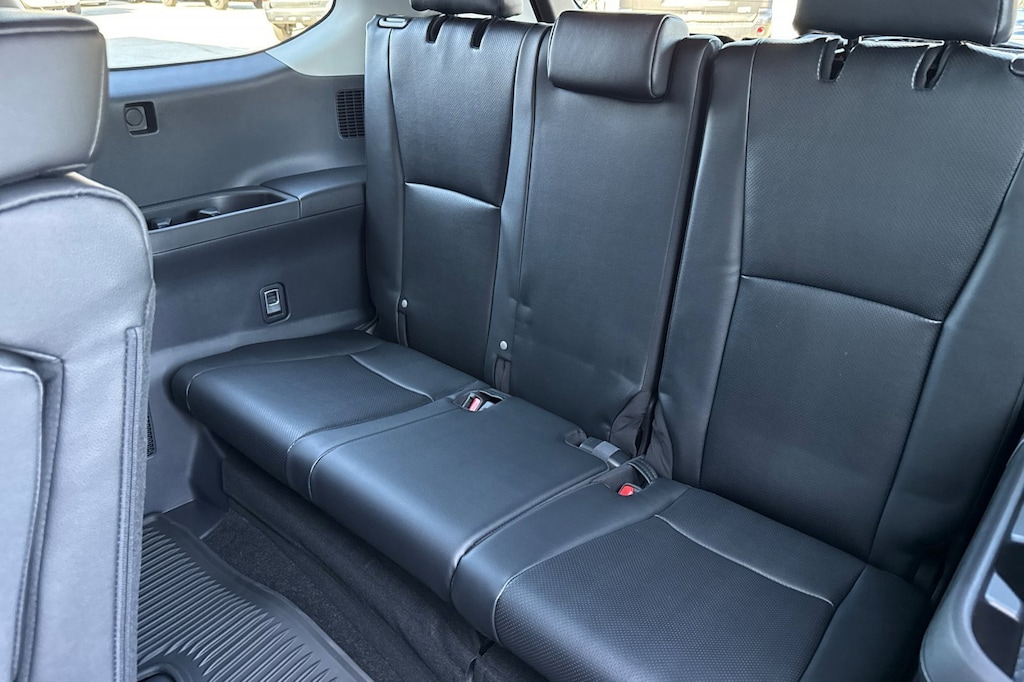 - 7-passenger seating with second-row fold-down captain's chairs and fold-down inboard armrests, adjustable headrests and two cup holders mounted on the floor; and 60/40 split, fold-down third-row seats with sliding headrests and recline function.
