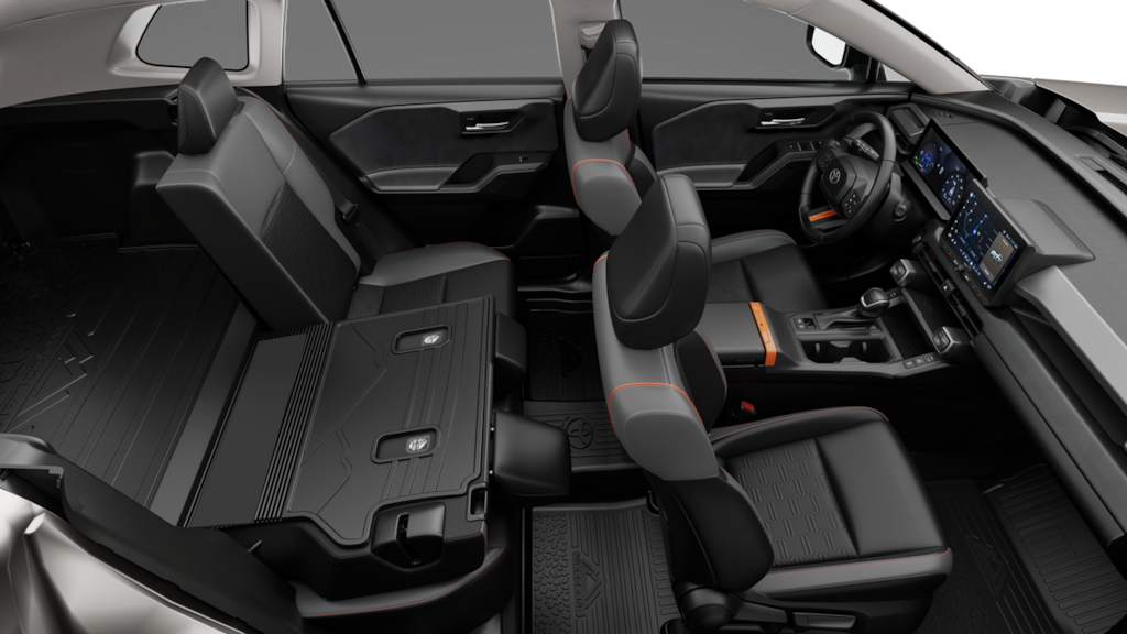 - 60/40 split reclining fold-flat rear seat with center armrest and cup holders.