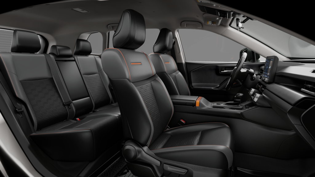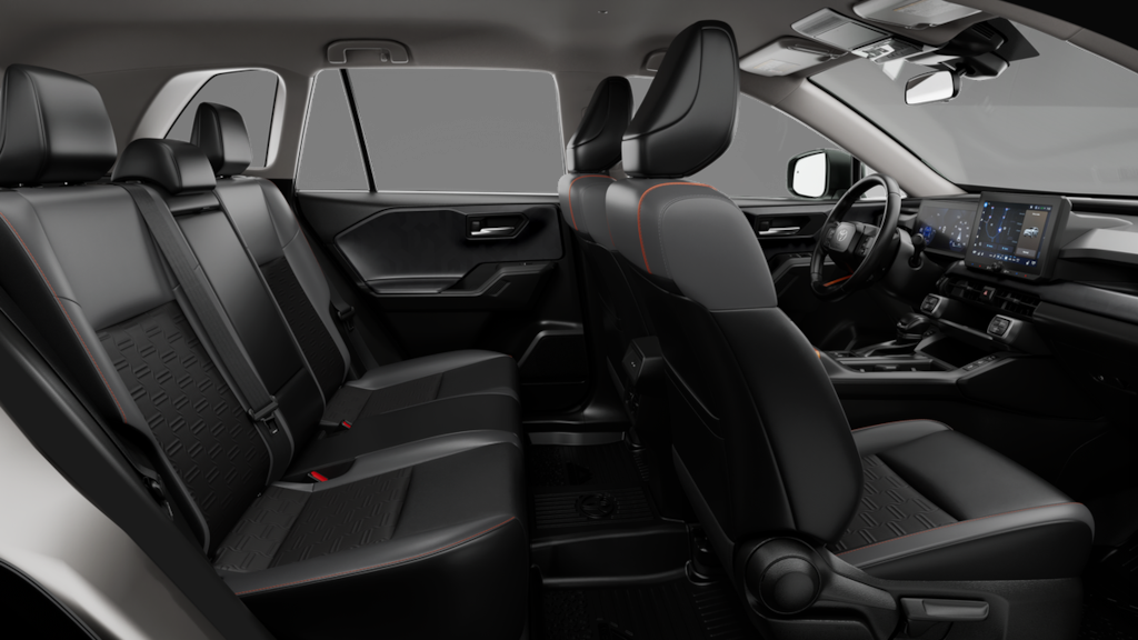 - Uniquely patterned perforated soft-touch door and dash panels with interior red-orange accents.