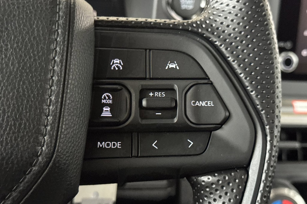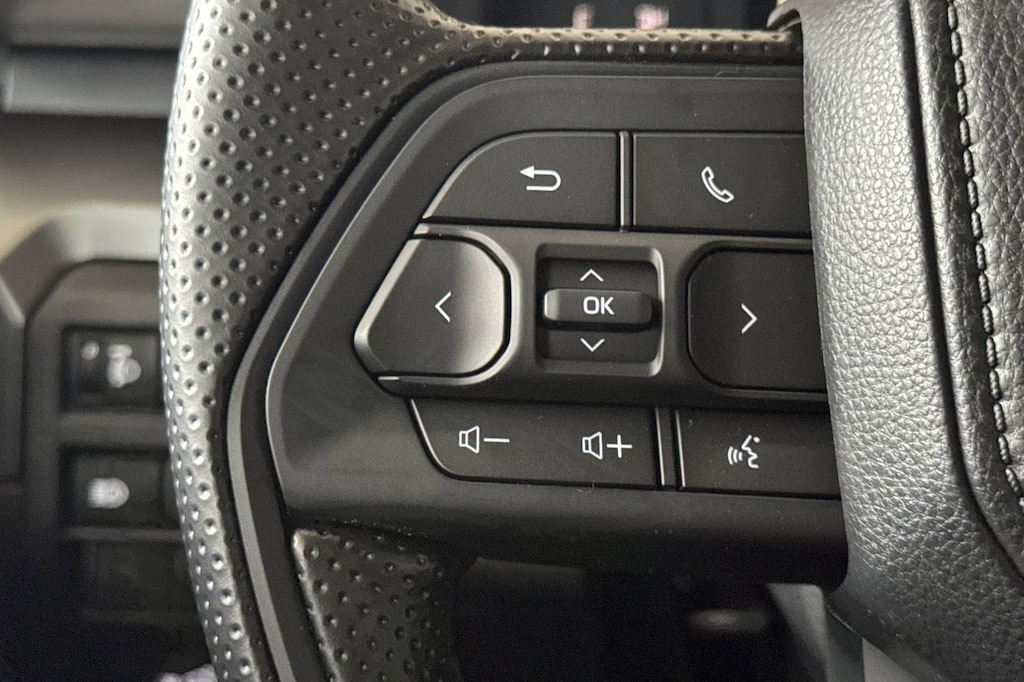 - Polyurethane manual tilt/telescopic steering wheel with phone, audio, display/infotainment, and driver assist controls.