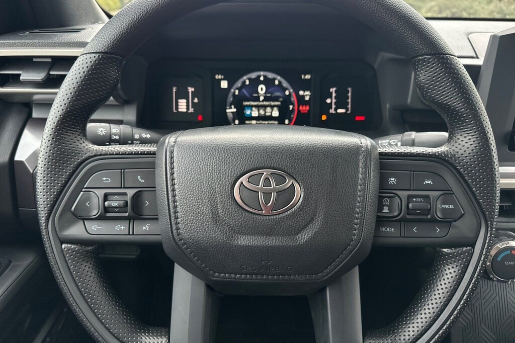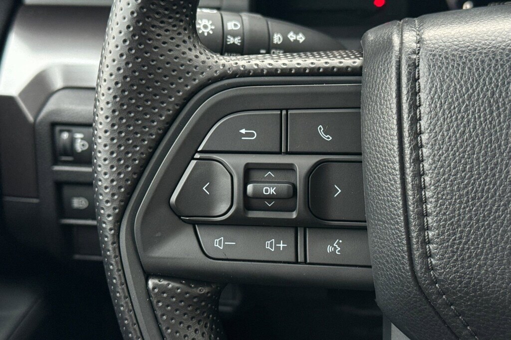 - Polyurethane manual tilt/telescopic steering wheel with phone, audio, display/infotainment, and driver assist controls.