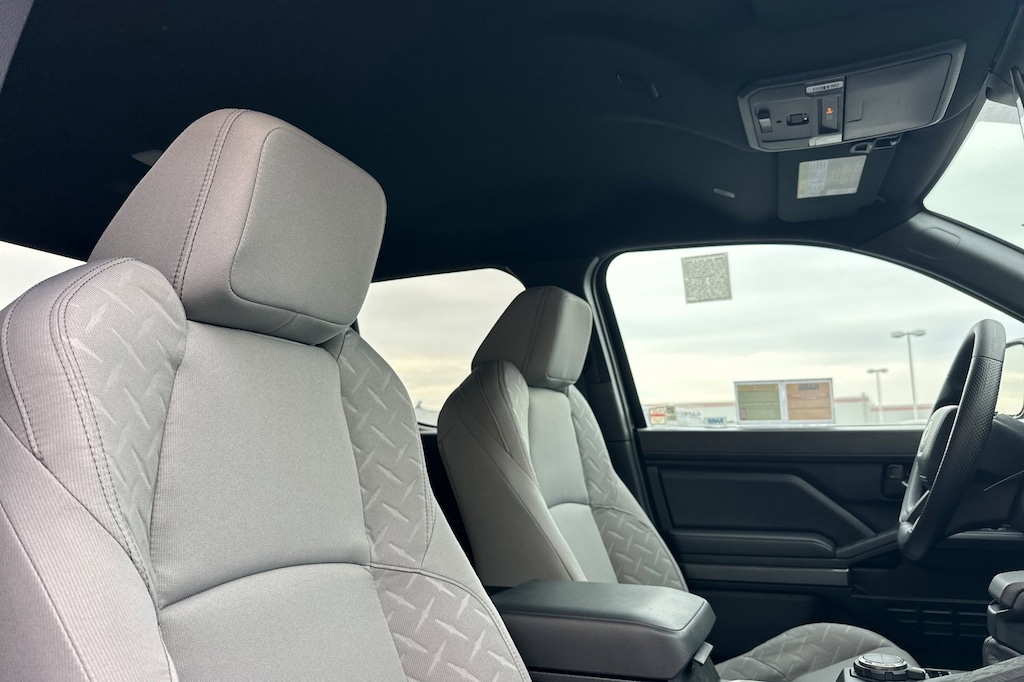 - Fabric-trimmed seats; 6-way manually adjustable driver and front passenger seats with 2-way power-adjustable lumbar support on driver's seat only.