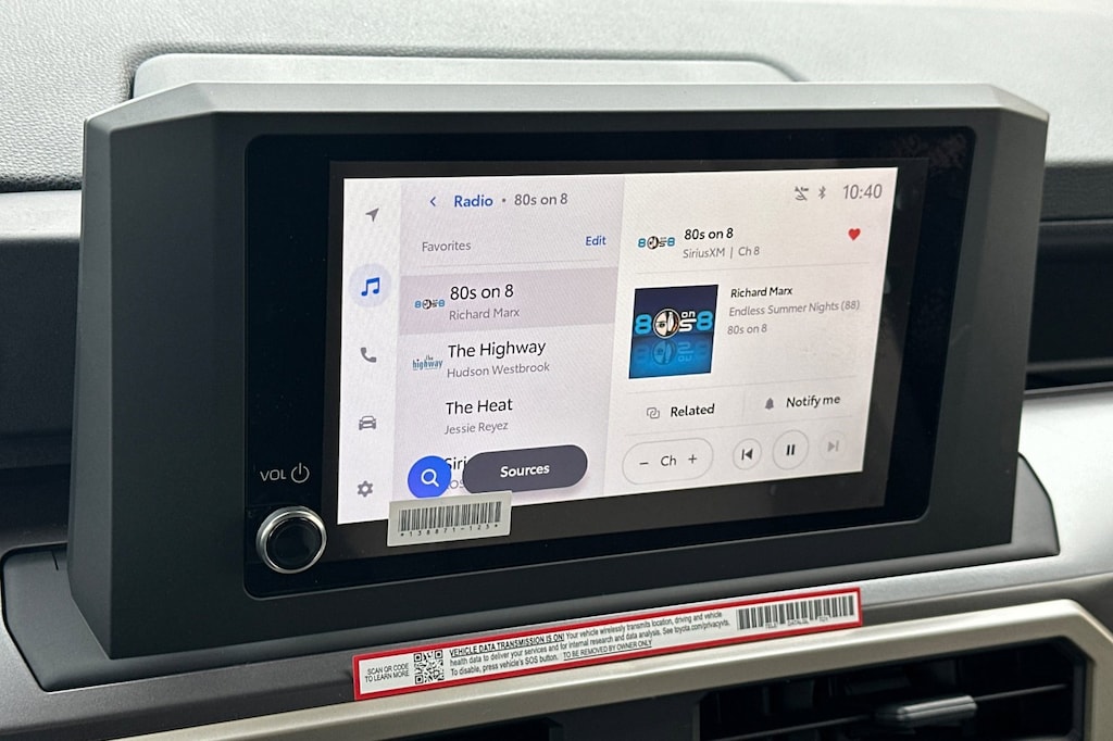- 8-in. Toyota audio multimedia display with 6-speaker audio system, wireless apple carplay®& android auto™compatibility, siriusxm® 3-month trial subscription.See toyota.Com/connected-services for details.Apple carplay® requires a compatible iphone® with an active data plan. Check compatibility at. Https://www.Apple.Com/ios/carplay/. . Operability depends on network availability, a cellular connection and gps signal. Services vary by vehicle and are subject to change at any time without notice. Data charges may apply. To learn more, go to. Https://www.Toyota.Com/audio-multimedia/. . To learn more about toyota connected services data collection, use, sharing and retention practices, please visit. Https://www.Toyota.Com/support/privacy-notice/. . Apple carplay® is a registered trademark of apple inc.,Wireless use of android auto requires a compatible android 11.0+ phone and compatible active data plan. Check. G.Co/androidauto/requirements. For compatibility. Operability depends on network availability, a cellular connection, and gps signal. Services vary by vehicle and are subject to change at any time without notice. Data charges may apply. To learn more, go to. Https://www.Toyota.Com/audio-multimedia/. . To learn more about toyota's connected services data collection, use, sharing, and retention practices, please visit. Https://www.Toyota.Com/support/privacy-notice/. . Google, android, android auto, google maps and other marks are trademarks of google llc. Compatible android phone and compatible active data plan required.,Service will automatically stop at the end of your trial subscription period unless you decide to continue service. Trial is non-transferable. If you do not wish to enjoy your trial, you can cancel by calling the number below. All siriusxm services require a subscription, each sold separately by siriusxm after the trial period. Service subject to the siriusxm customer agreement and privacy policy, visit siriusxm.Com for complete terms and how to cancel which includes online methods or calling 1-866-635-2349. Some services and features are subject to device capabilities and location availability. Satellite service not available in ak & hi. Content varies by siriusxm subscription plan. All fees, content and features are subject to change. Siriusxm and related logos are trademarks of sirius xm radio inc. And its respective subsidiaries.
