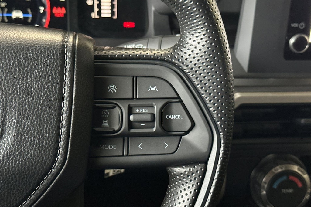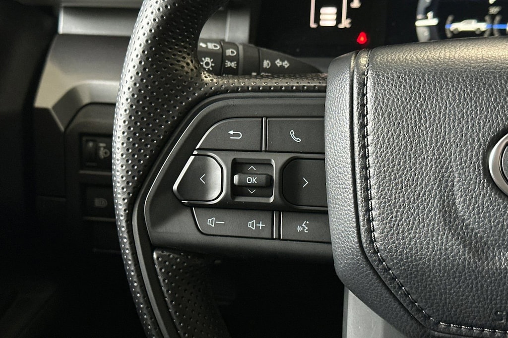 - Polyurethane manual tilt/telescopic steering wheel with phone, audio, display/infotainment, and driver assist controls.