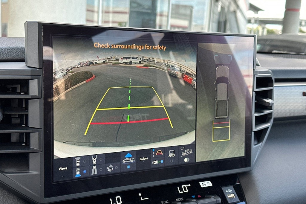 - Backup camerawith projected path.The backup camera does not provide a comprehensive view. Always look over shoulder and use outside mirrors. See. Owner's. Manual. For limitations.
