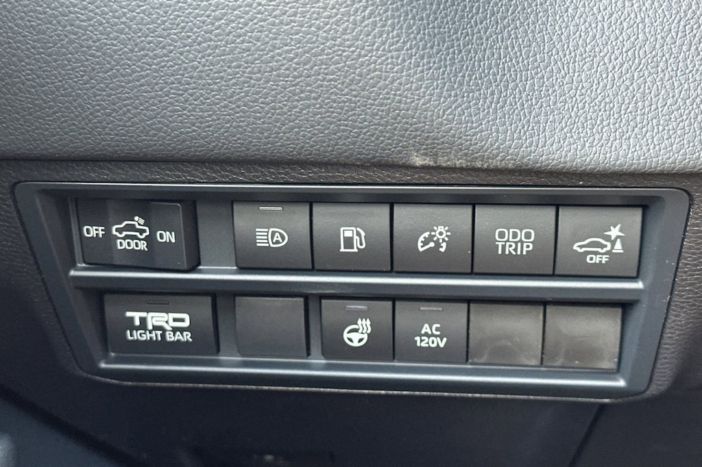 - Trd pro softex®-trimmed seats with contrast stitching and technical-camo-pattern inserts; 8-way power-adjustable driver and front passenger seats with power-adjustable lumbar support.