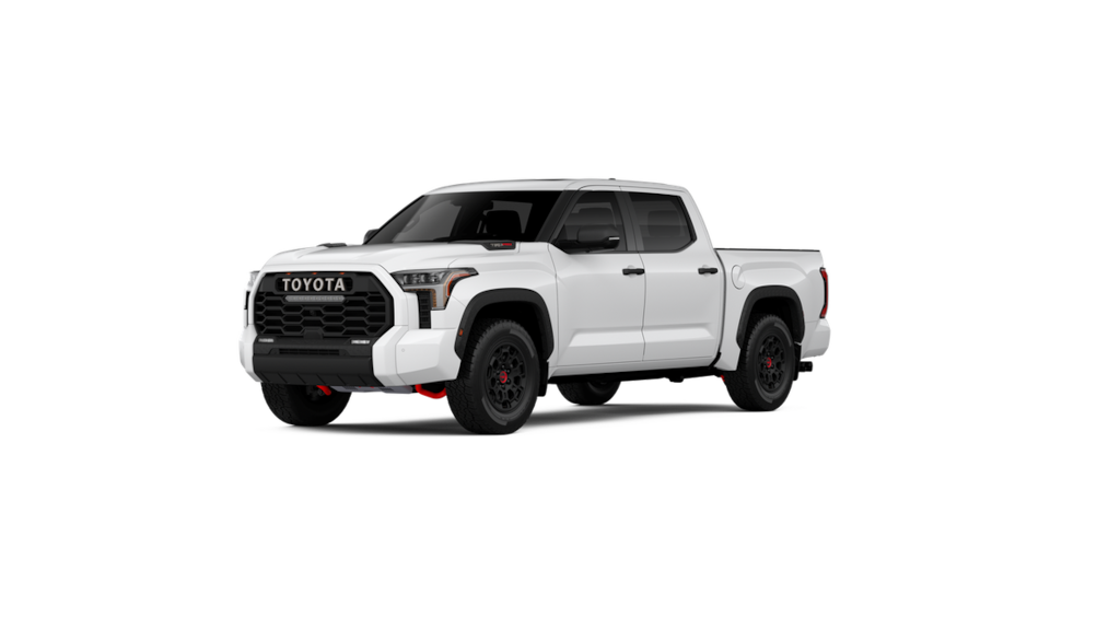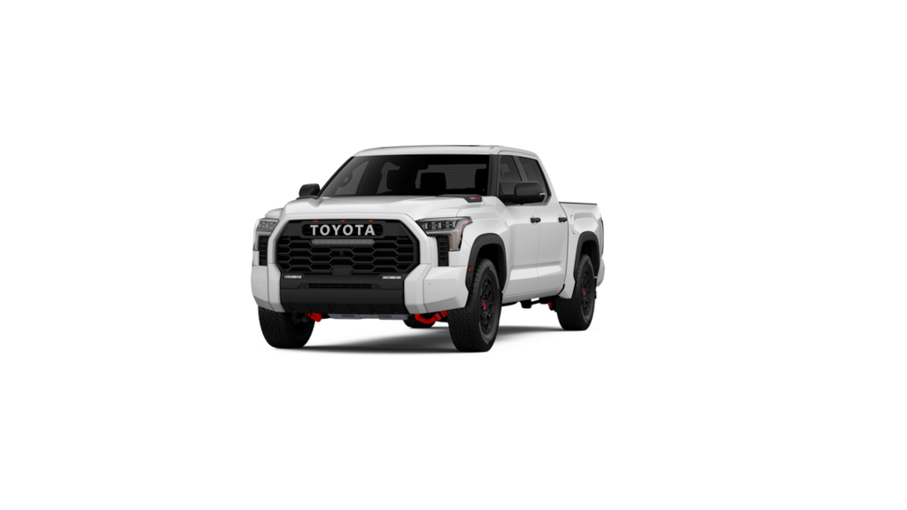 - Black 'TOYOTA' heritage grille with integrated light bar, amber marker lights, and color-keyed surround