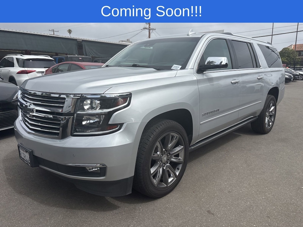 Suburban Premier, 4D Sport Utility, EcoTec3 5.3L V8, 6-Speed Automatic Electronic with Overdrive, RWD, Silver Ice Metallic, Jet Black Leather, 3.42 Rear Axle Ratio, 3rd Row 60/40 Power Fold Split-Bench, 3rd Row DVD Screen, Bose Centerpoint Premium 10-Speaker Surround Sound, CD player, Exterior Parking Camera Rear, Heated & Ventilated Driver & Front Passenger Seats, Heated 2nd Row Outboard Seats, Heated front seats, Integrated Trailer Brake Controller, Max Trailering Package, Navigation System, Power driver seat, Power Liftgate, Power passenger seat, Power Tilt-Sliding Sunroof w/Express-Open/Close, Rear air conditioning, Rear Seat Entertainment System, Remote keyless entry, Single-Slot CD/MP3 Player, Sun, Entertainment & Destinations Package, Ventilated front seats, Wheels: 20" x 9" Polished-Aluminum.