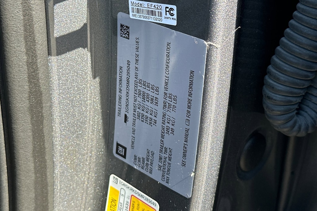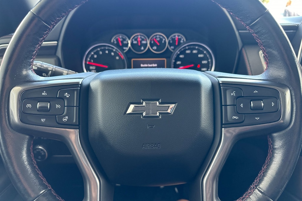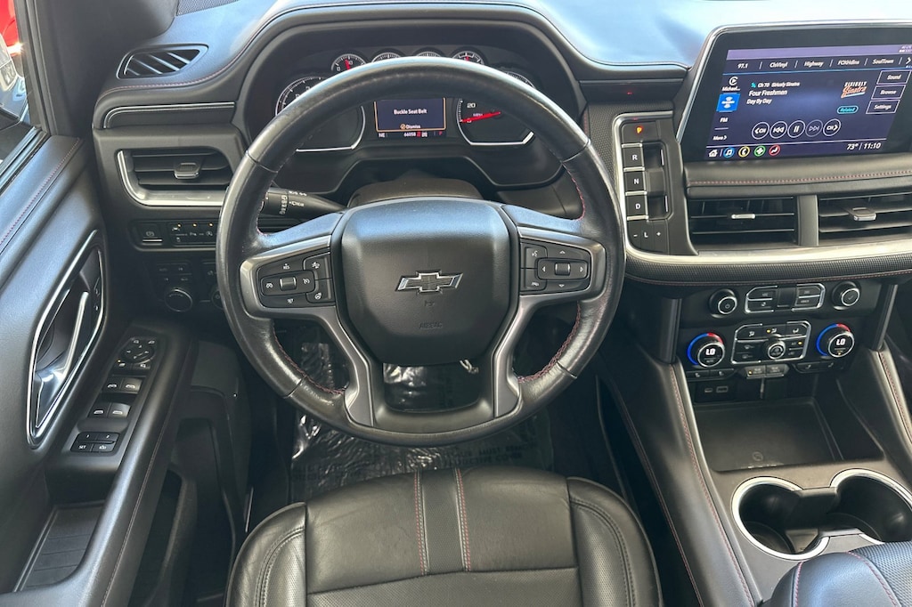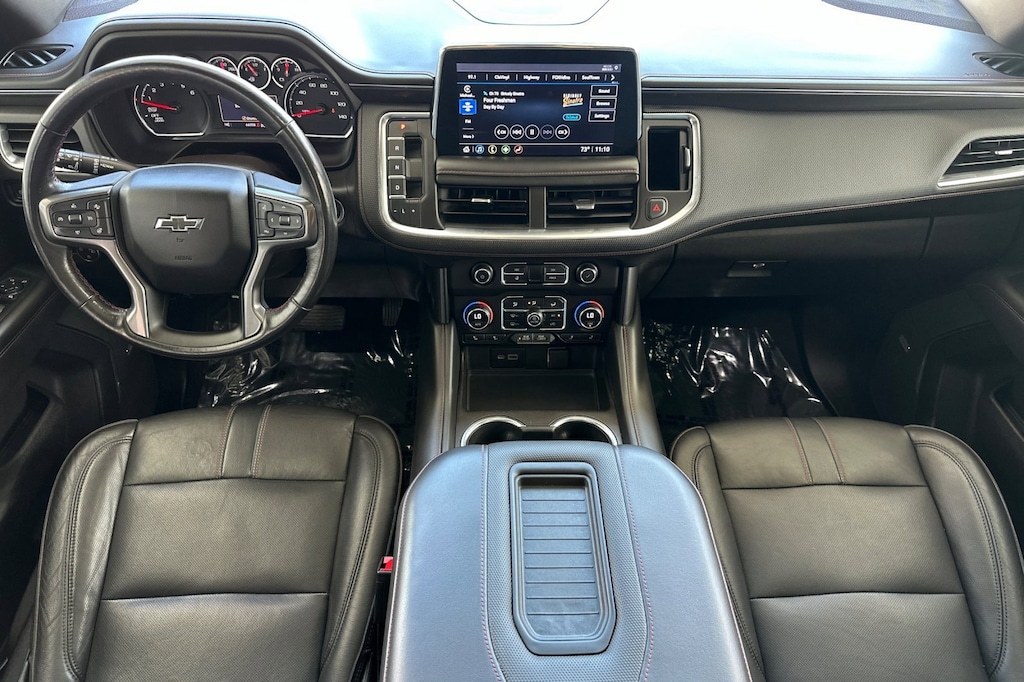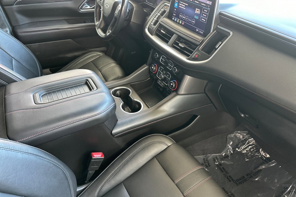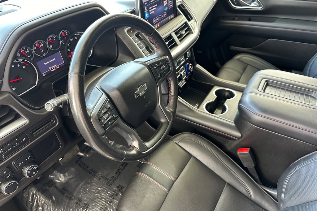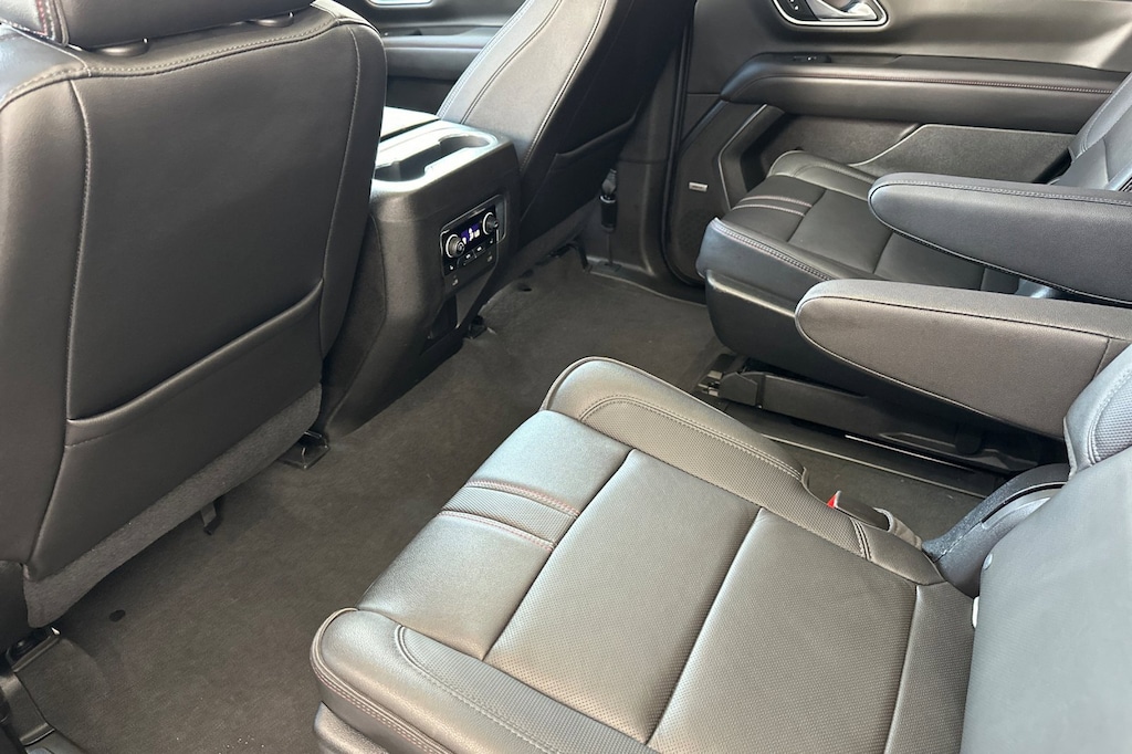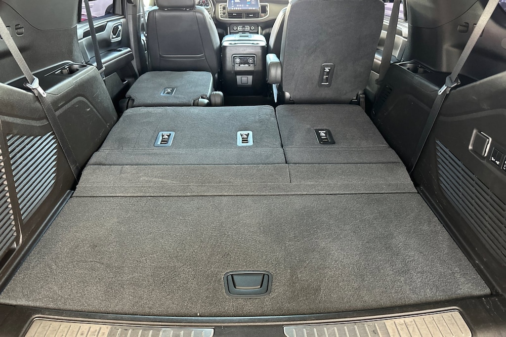 Driver Alert Package (Front & Rear Park Assist, Lane Change Alert w/Side Blind Zone Alert, Lane Keep Assist w/Lane Departure Warning, and Rear Cross Traffic Alert), License Plate Front Mounting Package, Luxury Package (3rd Row 60/40 Power-Folding Split-Bench Seat, Automatic Heated Steering Wheel, HD Surround Vision, Heated 2nd Row Outboard Seats, Memory Settings, Outside Heated Power-Adjustable Mirrors, Power Tilt & Telescopic Steering Column, and Rear Pedestrian Alert), Preferred Equipment Group 1SP (1st & 2nd Row Color-Keyed Carpeted Floor Mats, 2 USB Data Ports, Auto-Dimming Inside Rear-View Mirror, Bright Front & Rear Door Sill Plates, Color-Keyed Carpeting Floor Covering, Driver & Front Outboard Passenger Airbags, Floor Console w/Storage Area, Hands-Free Rear Power Programmable Liftgate, HD Radio, Infotainment Display, Leather-Wrapped Steering Wheel, LED Daytime Running Lamps, Memory Settings for Driver, Remote Start, SiriusXM Radio w/360L, and Universal Home Remote), 10-Way Power Driver & Passenger Seat Adjusters, 3.23 Rear Axle Ratio, 3rd row seats: split-bench, 4-Wheel Disc Brakes, 9 Speakers, ABS brakes, Air Conditioning, Alloy wheels, AM/FM radio: SiriusXM with 360L, Apple CarPlay/Android Auto, Auto High-beam Headlights, Auto-dimming Rear-View mirror, Automatic temperature control, Bose 9-Speaker Stereo Audio System Feature, Brake assist, Bumpers: body-color, Cargo Security Shade (LPO), Compass, Delay-off headlights, Driver door bin, Driver vanity mirror, Dual front impact airbags, Dual front side impact airbags, Dual-Pane Power Panoramic Sunroof, Electronic Stability Control, Emergency communication system: OnStar and Chevrolet connected services capable, Four wheel independent suspension, Front anti-roll bar, Front Bucket Seats, Front Center Armrest, Front dual zone A/C, Front High-Back Reclining Bucket Seats, Front reading lights, Fully automatic headlights, Garage door transmitter, Heated door mirrors, Heated Driver & Front Passenger Seats, Heated front seats, Illuminated entry, Leather steering wheel, Low tire pressure warning, Memory seat, Occupant sensing airbag, Outside temperature display, Overhead airbag, Overhead console, Panic alarm, Passenger door bin, Passenger vanity mirror, Perforated Leather Seat Trim, Power door mirrors, Power driver seat, Power Liftgate, Power passenger seat, Power Release 2nd Row Bucket Seats, Power steering, Power windows, Premium audio system: Chevrolet Infotainment 3, Premium Smooth Ride Suspension, Radio: Chevrolet Infotainment 3 Plus System, Rain sensing wipers, Rear air conditioning, Rear anti-roll bar, Rear reading lights, Rear seat center armrest, Rear window defroster, Rear window wiper, Remote keyless entry, Roof rack: rails only, Security system, Set of 4 Wheel Locks (LPO), Speed control, Speed-sensing steering, Split folding rear seat, Spoiler, Steering wheel mounted audio controls, Tachometer, Telescoping steering wheel, Tilt steering wheel, Traction control, Trip computer, Variably intermittent wipers, Voltmeter, and Wheels: 22" x 9" Bright Machined.