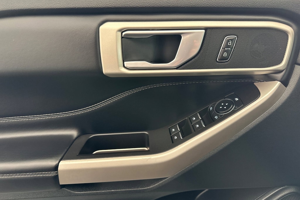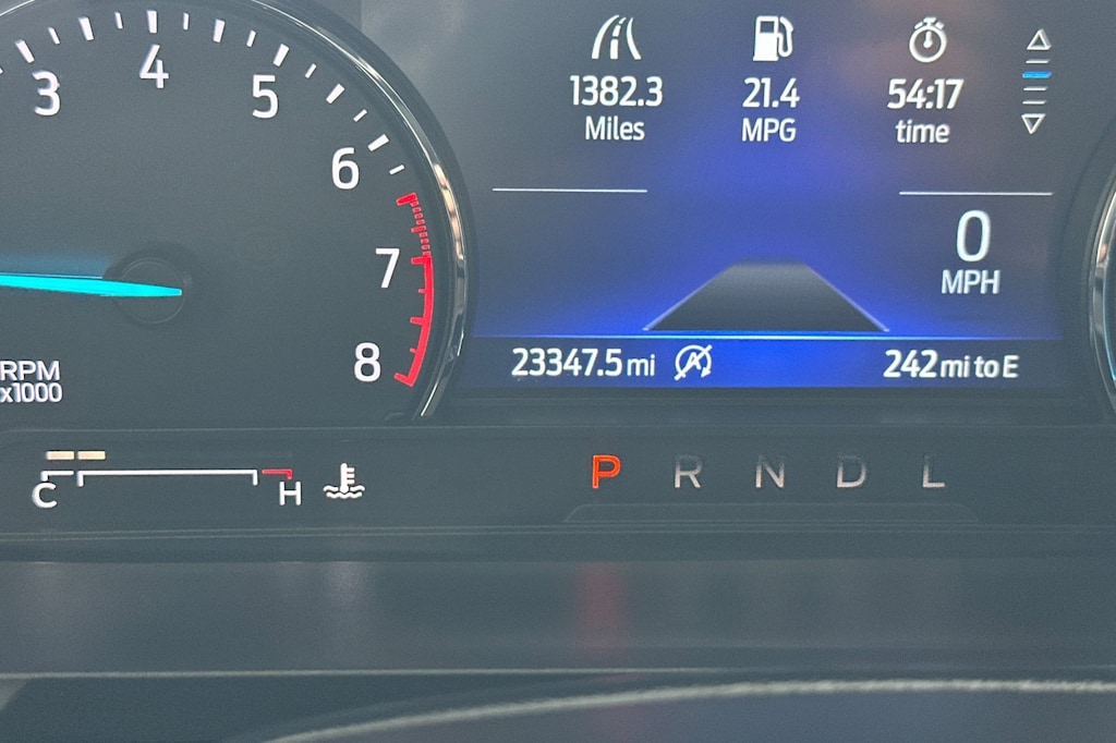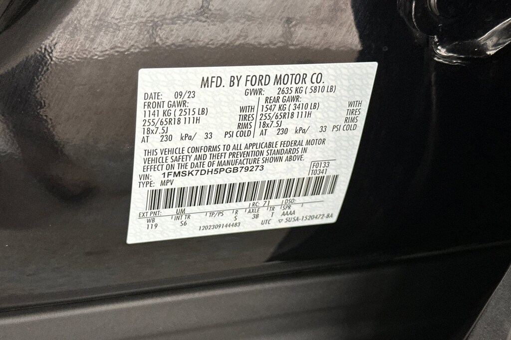 Equipment Group 202A (Heated ActiveX Captain's Chairs, Heated Steering Wheel, LED Fog Lamps, Remote Start System, and SecuriCode Keyless Entry Keypad), 3.58 Non-Limited-Slip Rear Axle Ratio, 3rd row seats: bench, 4-Wheel Disc Brakes, 4G LTE Wi-Fi Hotspot Credit, 6 Speakers, ABS brakes, Air Conditioning, Alloy wheels, AM/FM radio: SiriusXM, AM/FM Stereo, Auto High-beam Headlights, Automatic temperature control, Brake assist, Bumpers: body-color, Compass, Delay-off headlights, Driver door bin, Driver vanity mirror, Dual front impact airbags, Dual front side impact airbags, Electronic Stability Control, Emergency communication system: SYNC 3 911 Assist, Exterior Parking Camera Rear, FordPass Connect, Four wheel independent suspension, Front & Second Row Floor Liners (16B), Front anti-roll bar, Front Bucket Seats, Front Center Armrest, Front dual zone A/C, Front reading lights, Fully automatic headlights, Heated door mirrors, Heated front seats, Heated Unique Cloth Captain's Chairs, Illuminated entry, Knee airbag, Leather steering wheel, Low tire pressure warning, Occupant sensing airbag, Outside temperature display, Overhead airbag, Overhead console, Panic alarm, Passenger door bin, Passenger vanity mirror, Power door mirrors, Power driver seat, Power Liftgate, Power passenger seat, Power steering, Power windows, Rear air conditioning, Rear anti-roll bar, Rear Auxiliary Controls Credit, Rear reading lights, Rear window defroster, Rear window wiper, Remote keyless entry, Roof rack: rails only, Security system, Speed control, Speed-sensing steering, Speed-Sensitive Wipers, Split folding rear seat, Spoiler, Steering wheel mounted audio controls, SYNC 3 Communications & Entertainment System, SYNC 3/Apple CarPlay/Android Auto, Tachometer, Telescoping steering wheel, Tilt steering wheel, Traction control, Trip computer, Variably intermittent wipers, and Wheels: 18" 5-Spoke Silver-Painted Aluminum.