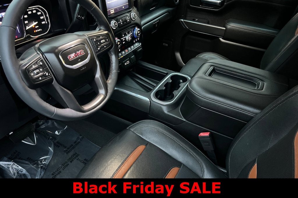 AT4 Preferred Package (Power Sliding Rear Window w/Rear Defogger, Premium Bose 7-Speaker Sound System, Radio: Premium GMC Infotainment Sys w/Navigation, SiriusXM Radio, Universal Home Remote, and Wireless Charging), AT4 Premium Package (Trailer Tire Pressure Monitor System), Driver Alert Package I (Lane Change Alert w/Side Blind Zone Alert, Rear Cross Traffic Alert, and Ultrasonic Front & Rear Park Assist), Driver Alert Package II (Following Distance Indicator, Forward Collision Alert, Front Pedestrian Braking, IntelliBeam Automatic High Beam On/Off, Lane Keep Assist w/Lane Departure Warning, Low Speed Forward Automatic Braking, and Safety Alert Seat), Preferred Equipment Group 4SB (12-Volt Rear Auxiliary Power Outlet, 120-Volt Bed Mounted Power Outlet, 120-Volt Instrument Panel Power Outlet, 170 Amp Alternator, 2 USB Ports, 2 USB Ports (1st Row), 4.2" Diagonal Color Display Driver Info Center, All-Weather Floor Liner (LPO), Auxiliary External Transmission Oil Cooler, Body-Color Surround Grille, Color-Keyed Carpeting Floor Covering, Compass, Deep-Tinted Glass, Electric Rear-Window Defogger, Electrical Lock Control Steering Column, Floor Mounted Console, GMC 4G LTE, GMC Connected Access, HD Radio, HD Rear Vision Camera, Heated 2nd Row Outboard Seats, Heated Driver & Front Passenger Seating, Heavy-Duty Rear Locking Differential, High-Capacity Air Filter, Hill Descent Control, Hitch Guidance, Hitch Guidance w/Hitch View, In-Vehicle Trailering App, Integrated Trailer Brake Controller, Keyless Open & Start, LED Cargo Area Lighting, Manual Tilt-Wheel & Telescoping Steering Column, OnStar & GMC Connected Services Capable, Power Door Locks, Power Front Passenger Windows w/Express Up/Down, Power Front Windows w/Driver Express Up/Down, Power Rear Windows w/Express Down, Rear Dual USB Charging-Only Ports, Rear Wheelhouse Liners, Red Recovery Hooks, Remote Vehicle Starter System, Spray-On Pickup Bed Liner w/AT4 Logo, Steering Wheel Audio Controls, Theft Deterrent System (Unauthorized Entry), and Ventilated Driver & Front Passenger Seats), Technology Package (8" Driver Information Center, Black Mirror Caps (LPO), HD Surround Vision, Multi-Color 15" Diagonal Head-Up Display, and Rear Camera Mirror), Trailering Package, 10-Way Power Driver Seat Adjuster w/Lumbar, 10-Way Power Passenger Seat Adjuster w/Lumbar, 18" x 8.5" Machined Aluminum Wheels, 3.23 Rear Axle Ratio, 4-Wheel Disc Brakes, 6 Speakers, 6-Speaker Audio System Feature, 6" Rectangular Black Tubular Assist Steps (LPO), ABS brakes, Air Conditioning, Alloy wheels, AM/FM radio: SiriusXM, Apple CarPlay/Android Auto, Auto-dimming door mirrors, Auto-dimming Rear-View mirror, Automatic temperature control, Brake assist, Bumpers: body-color, Delay-off headlights, Driver door bin, Driver Memory, Driver vanity mirror, Dual front impact airbags, Dual front side impact airbags, Electronic Stability Control, Front anti-roll bar, Front Bucket Seats, Front Center Armrest, Front dual zone A/C, Front fog lights, Front License Plate Kit, Front reading lights, Front wheel independent suspension, Fully automatic headlights, Heated door mirrors, Heated front seats, Heated rear seats, Heated steering wheel, Illuminated entry, Lockable Console Vault (LPO), Low tire pressure warning, Memory seat, Occupant sensing airbag, Off-Road Suspension, Outside temperature display, Overhead airbag, Overhead console, Panic alarm, Passenger door bin, Passenger vanity mirror, Perforated Leather-Appointed Seat Trim, Power door mirrors, Power driver seat, Power passenger seat, Power steering, Power windows, Premium audio system: GMC Infotainment System, Radio data system, Radio: Premium GMC Infotainment Sys w/Multi-Touch, Rear reading lights, Rear seat center armrest, Rear step bumper, Rear Underseat Storage (LPO), Rear window defroster, Remote keyless entry, Security system, Speed control, Speed-sensing steering, Split folding rear seat, Steering wheel mounted audio contro