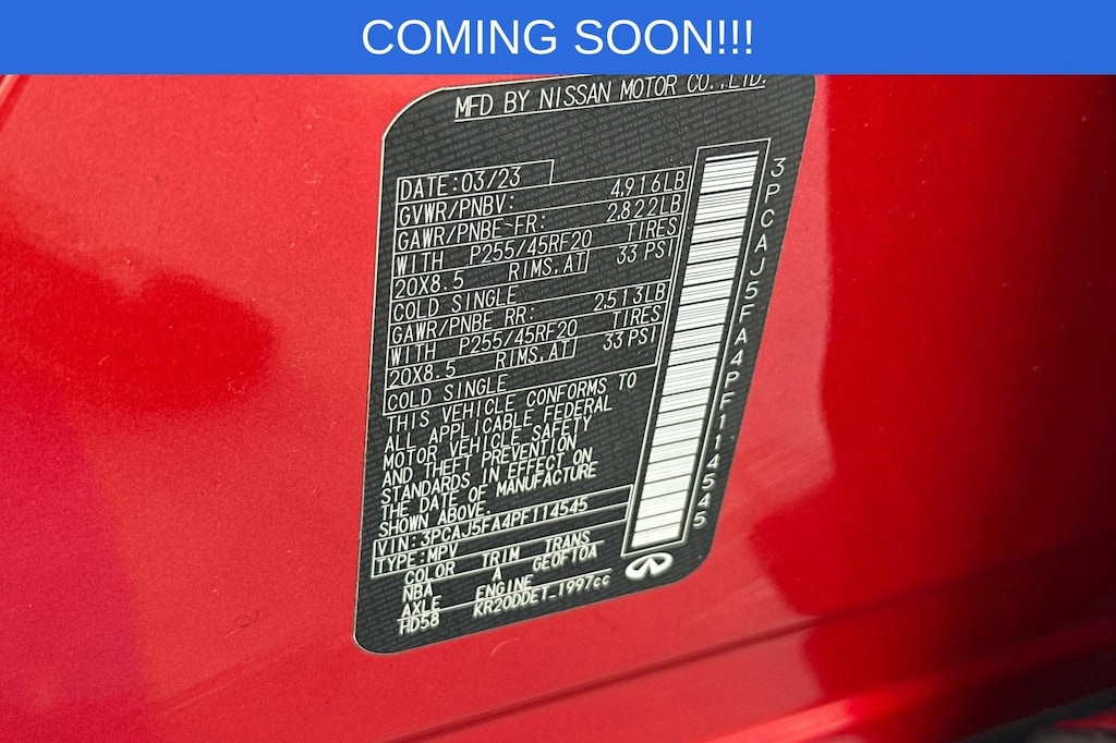 QX50 SPORT, 4D Sport Utility, I4, CVT, FWD, Dynamic Sunstone Red, Monaco Red Leather, Bose Premium Audio System, CD player, Heated front seats, Navigation system: INFINITI InTouch Navigation, Power driver seat, Power Liftgate, Power moonroof, Power passenger seat, Remote keyless entry, Spoiler, Ventilated front seats, Wheels: 20" Black Painted Machine Finished.