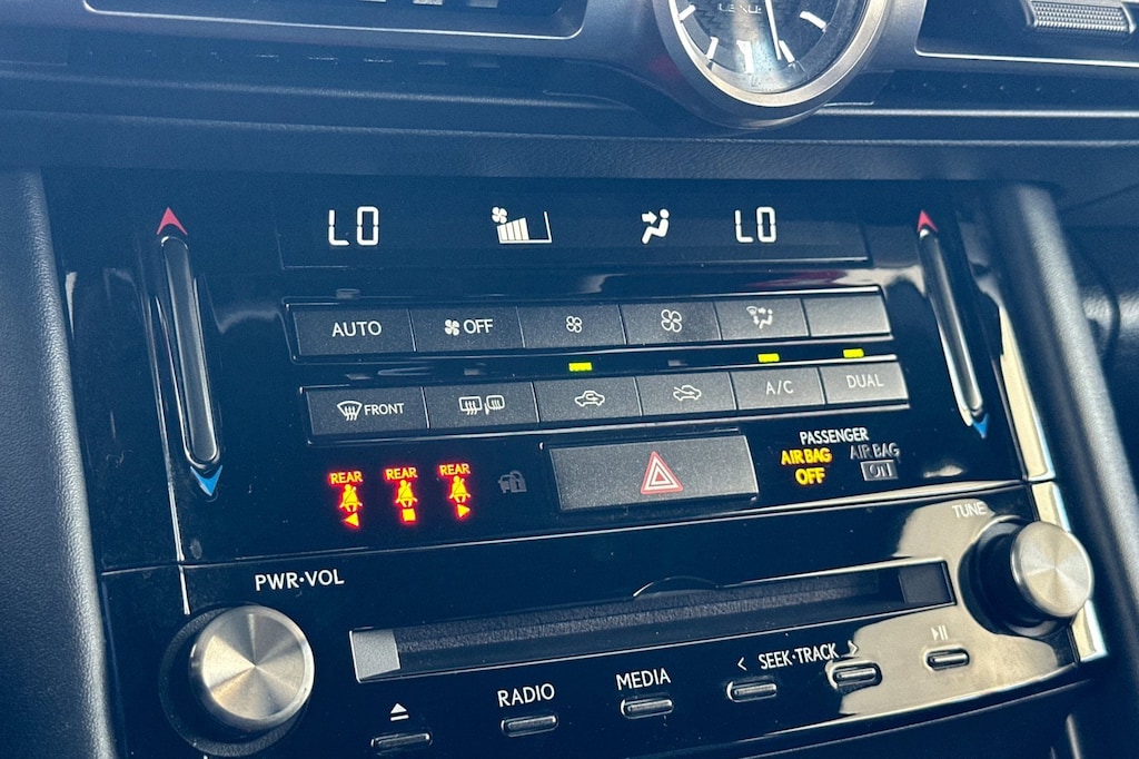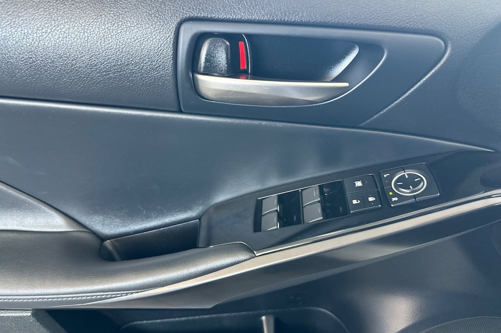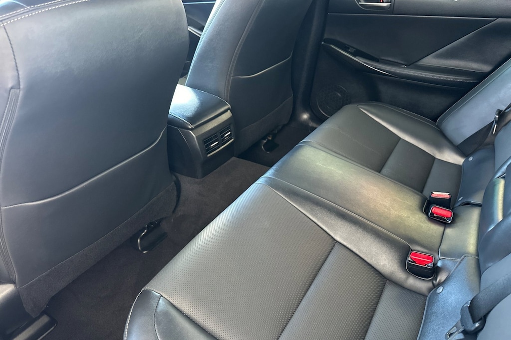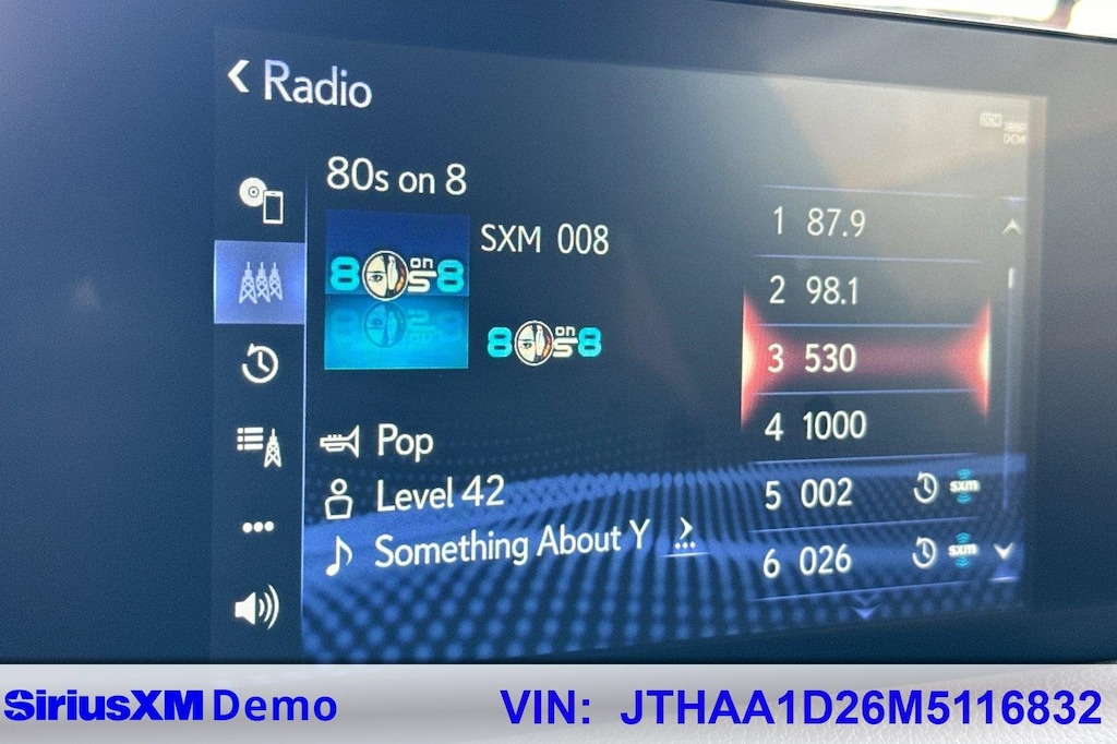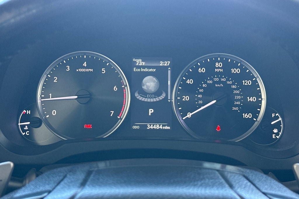10 Speakers, 4-Wheel Disc Brakes, ABS brakes, Air Conditioning, Alloy wheels, AM/FM radio: SiriusXM, AM/FM/CD Player, Apple CarPlay/Android Auto, Auto High-beam Headlights, Auto-dimming door mirrors, Automatic temperature control, Brake assist, Bumpers: body-color, CD player, Compass, Delay-off headlights, Driver door bin, Driver vanity mirror, Dual front impact airbags, Dual front side impact airbags, Electronic Stability Control, Emergency communication system: Lexus Enform w/Safety Connect, Exterior Parking Camera Rear, Four wheel independent suspension, Front anti-roll bar, Front Bucket Seats, Front Center Armrest, Front dual zone A/C, Front fog lights, Front reading lights, Fully automatic headlights, Garage door transmitter: HomeLink, Heated door mirrors, Illuminated entry, Knee airbag, Leather Shift Knob, Low tire pressure warning, NuLuxe Seat Trim, Occupant sensing airbag, Outside temperature display, Overhead airbag, Overhead console, Panic alarm, Passenger door bin, Passenger vanity mirror, Power door mirrors, Power driver seat, Power passenger seat, Power steering, Power windows, Radio data system, Rain sensing wipers, Rear anti-roll bar, Rear reading lights, Rear seat center armrest, Rear side impact airbag, Rear window defroster, Remote keyless entry, Security system, Speed control, Speed-sensing steering, Speed-Sensitive Wipers, Split folding rear seat, Steering wheel mounted audio controls, Tachometer, Telescoping steering wheel, Tilt steering wheel, Traction control, Trip computer, Turn signal indicator mirrors, Variably intermittent wipers, and Wheels: 18" x 8.5J"