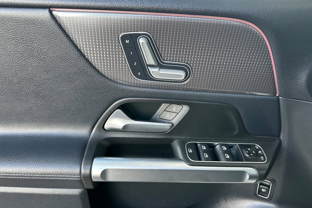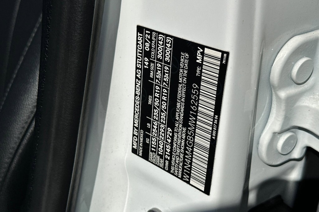 4-Way Power Lumbar Support, 4-Wheel Disc Brakes, 8 Speakers, 8-Way Power Front Seats w/Memory, ABS brakes, Air Conditioning, Alloy wheels, AM/FM radio, Android Auto®, Apple CarPlay®, Apple CarPlay®/Android Auto®, Automatic temperature control, Axle Ratio: TBD, Brake assist, Bumpers: body-color, Child-Seat-Sensing Airbag, Delay-off headlights, Driver door bin, Driver vanity mirror, Dual front impact airbags, Dual front side impact airbags, Electronic Stability Control, Emergency communication system: Mercedes-Benz Emergency Call Service, Exterior Parking Camera Rear, Four wheel independent suspension, Front anti-roll bar, Front Bucket Seats, Front Center Armrest, Front dual zone A/C, Front fog lights, Front reading lights, Fully automatic headlights, HD Radio, Heated door mirrors, Illuminated entry, Knee airbag, Low tire pressure warning, MB-Tex Upholstery, MBUX Voice Control, Memory seat, Occupant sensing airbag, Outside temperature display, Overhead airbag, Overhead console, Panic alarm, Passenger door bin, Passenger vanity mirror, Power door mirrors, Power driver seat, Power Liftgate, Power passenger seat, Power steering, Power windows, Premium audio system: MBUX, Radio data system, Radio: MBUX Multimedia System, Rain sensing wipers, Rear anti-roll bar, Rear fog lights, Rear reading lights, Rear window defroster, Rear window wiper, Remote keyless entry, Roof rack: rails only, Security system, Smartphone Integration, Speed control, Speed-sensing steering, Split folding rear seat, Spoiler, Steering wheel mounted audio controls, Tachometer, Telescoping steering wheel, Tilt steering wheel, Traction control, Trip computer, Turn signal indicator mirrors, Variably intermittent wipers, and Wheels: 18" Twin 5-Spoke.