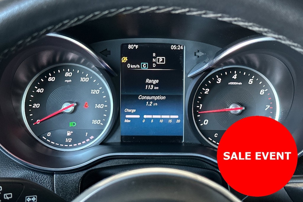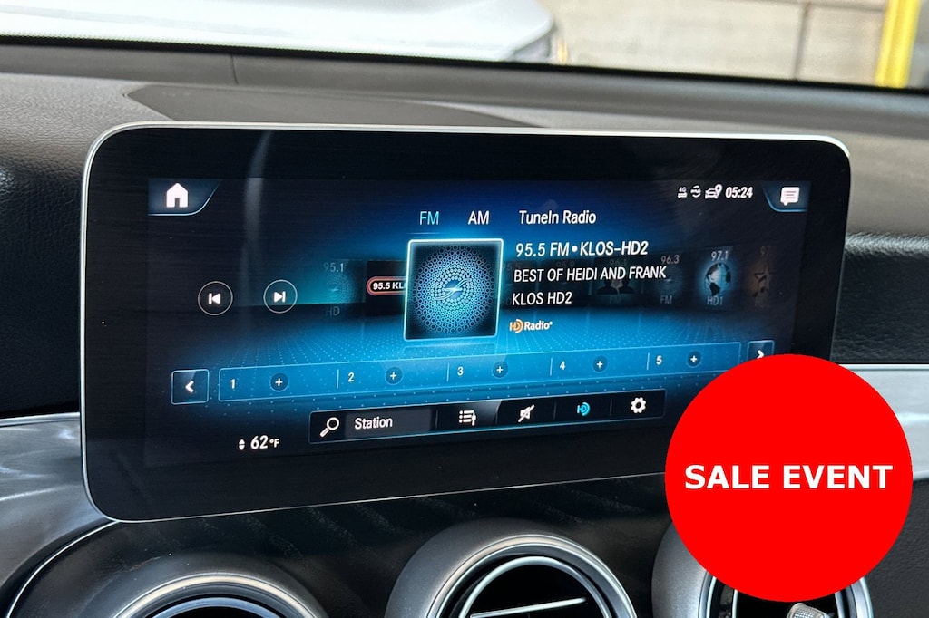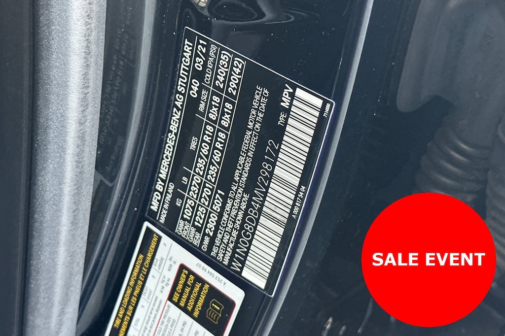 10.25" Center Touchscreen Display, 3.27 Axle Ratio, 4-Way Lumbar Support, 4-Wheel Disc Brakes, 6 Speakers, ABS brakes, Air Conditioning, Alloy wheels, AM/FM radio, Apple CarPlay®/Android Auto®, Auto tilt-away steering wheel, Auto-dimming door mirrors, Auto-dimming Rear-View mirror, Automatic temperature control, Brake assist, Bumpers: body-color, Child-Seat-Sensing Airbag, Delay-off headlights, Driver door bin, Driver vanity mirror, Dual front impact airbags, Dual front side impact airbags, Electronic Stability Control, Emergency communication system: eCall Emergency System, Exterior Parking Camera Rear, Four wheel independent suspension, Front anti-roll bar, Front Bucket Seats, Front Center Armrest, Front dual zone A/C, Front reading lights, Fully automatic headlights, Garage door transmitter: HomeLink, Genuine wood dashboard insert, Heated door mirrors, Heated Front Bucket Seats, Heated front seats, Illuminated entry, Knee airbag, Leather steering wheel, Low tire pressure warning, MB-Tex Upholstery, Memory seat, Occupant sensing airbag, Outside temperature display, Overhead airbag, Overhead console, Panic alarm, Passenger door bin, Passenger vanity mirror, Power door mirrors, Power driver seat, Power Front Seat w/Driver Memory, Power Liftgate, Power passenger seat, Power steering, Power windows, Radio data system, Radio: MBUX Multimedia System, Rain sensing wipers, Rear anti-roll bar, Rear fog lights, Rear reading lights, Rear seat center armrest, Rear window defroster, Rear window wiper, Remote keyless entry, Roof rack: rails only, Security system, Speed control, Speed-sensing steering, Split folding rear seat, Spoiler, Steering wheel memory, Steering wheel mounted audio controls, Tachometer, Telescoping steering wheel, Tilt steering wheel, Traction control, Trip computer, Turn signal indicator mirrors, Variably intermittent wipers, and Wheels: 8J x 18 ET 38 Split 5-Spoke.