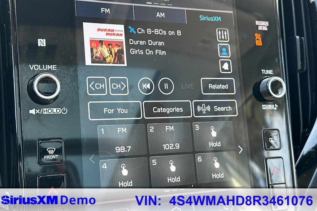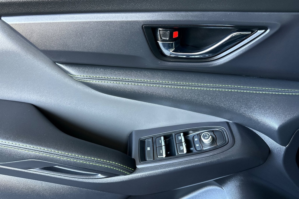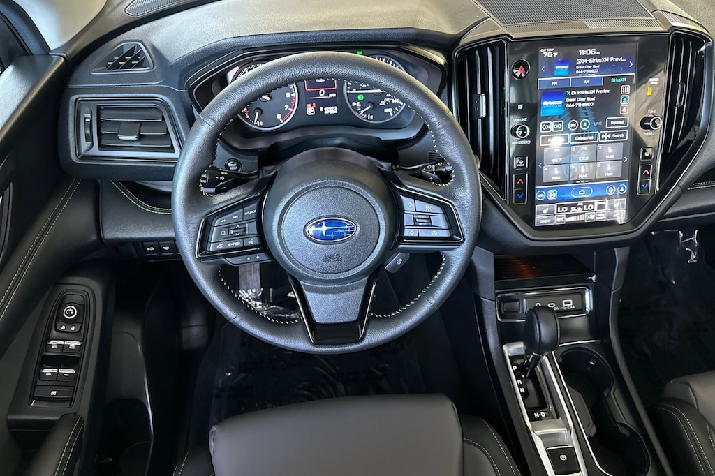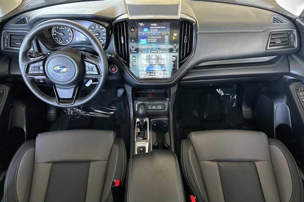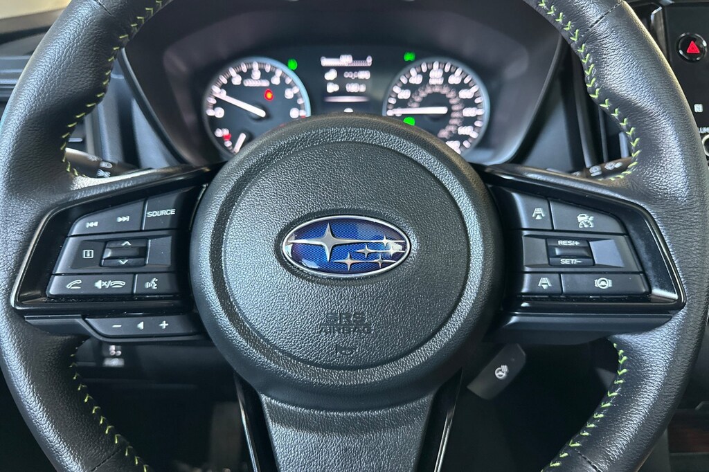 Standard Model, 3rd Row Bench Rear Seatback Protector, 3rd row seats: bench, 4-Wheel Disc Brakes, 6 Speakers, ABS brakes, Air Conditioning, All-Weather Floor Liners, Alloy wheels, AM/FM radio: SiriusXM, Auto High-beam Headlights, Auto-Dimming Exterior Mirror w/Approach Light, Auto-dimming Rear-View mirror, Automatic temperature control, Axle Ratio: 4.44, Brake assist, Bumpers: body-color, Cargo Net, Compass, Delay-off headlights, Driver door bin, Driver vanity mirror, Dual front impact airbags, Dual front side impact airbags, Electronic Stability Control, Emergency communication system: STARLINK Safety and Security (Subscription Required), Exterior Parking Camera Rear, Four wheel independent suspension, Front anti-roll bar, Front Bucket Seats, Front Center Armrest, Front dual zone A/C, Front fog lights, Front reading lights, Fully automatic headlights, Garage door transmitter: HomeLink, Heated door mirrors, Heated Front Bucket Seats, Heated front seats, Heated steering wheel, Illuminated entry, Knee airbag, Leather Shift Knob, Leather steering wheel, LED Upgrade, Low tire pressure warning, Occupant sensing airbag, Outside temperature display, Overhead airbag, Overhead console, Panic alarm, Passenger door bin, Passenger vanity mirror, Power door mirrors, Power driver seat, Power Liftgate, Power moonroof, Power steering, Power windows, Radio data system, Radio: Subaru STARLINK 11.6" Multimedia Plus System, Rear air conditioning, Rear anti-roll bar, Rear reading lights, Rear window defroster, Rear window wiper, Reclining 3rd row seat, Remote keyless entry, Security system, Speed control, Speed-sensing steering, Split folding rear seat, Spoiler, STARLINK/Apple CarPlay/Android Auto, StarTex Upholstery, Steering wheel mounted audio controls, Tachometer, Telescoping steering wheel, Tilt steering wheel, Traction control, Trip computer, Turn signal indicator mirrors, Variably intermittent wipers, Wheels: 20" x 7.5 J Aluminum Alloy w/Black Finish, and Wireless Charger.