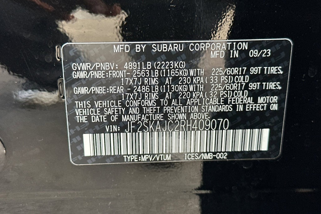 Forester Wilderness, 4D Sport Utility, 2.5L 4-Cylinder DOHC 16V, Lineartronic CVT, AWD, Crystal Black Silica, Gray Premium Synthetic, 8" Audio w/harman/kardon & Power Rear Gate, Exterior Parking Camera Rear, harman/kardon 9-Speaker Audio System, Navigation System, Power moonroof: Panoramic, Power Rear Gate, Radio: Subaru STARLINK 8.0" Multimedia Nav System, Radio: Subaru STARLINK 8.0" Multimedia Plus System, Roof rack: rails only, Wheels: 17" x 7.0 J Matte Black Finish Alum-Alloy.
