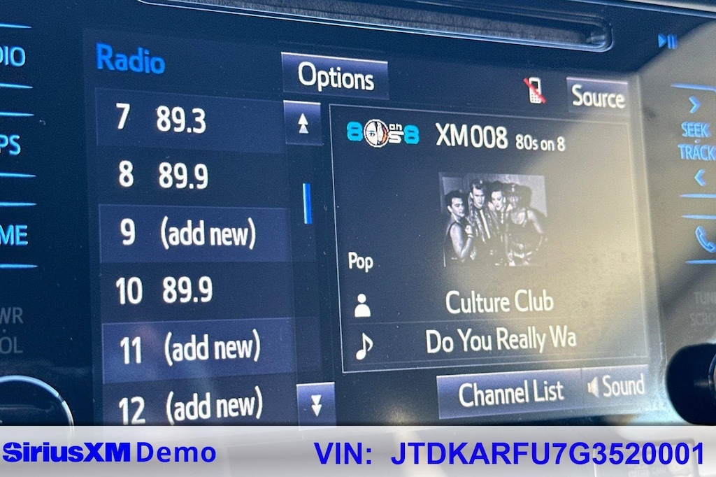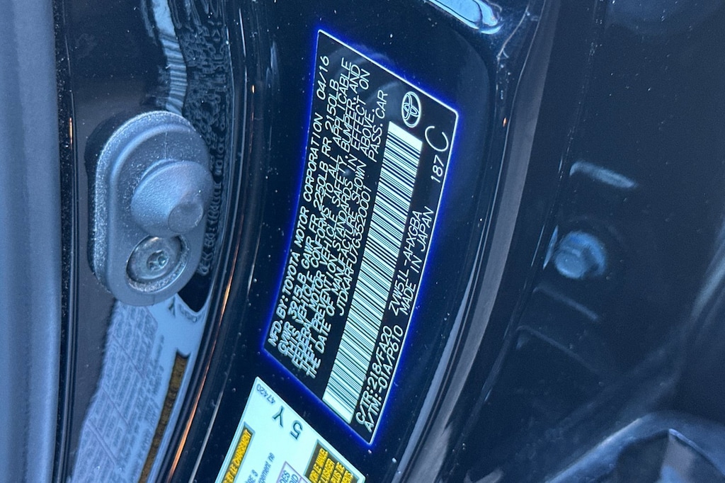 ABS brakes, Alloy wheels, Electronic Stability Control, Heated door mirrors, Illuminated entry, Low tire pressure warning, Remote keyless entry, Traction control. ABS brakes, Alloy wheels, Electronic Stability Control, Heated door mirrors, Illuminated entry, Low tire pressure warning, Remote keyless entry, Traction control, 4-Wheel Disc Brakes, 6 Speakers, Air Conditioning, AM/FM radio: SiriusXM, Automatic temperature control, Brake assist, Bumpers: body-color, CD player, Delay-off headlights, Driver door bin, Driver vanity mirror, Dual front impact airbags, Dual front side impact airbags, Exterior Parking Camera Rear, Fabric Seat Trim, Four wheel independent suspension, Front anti-roll bar, Front Bucket Seats, Front Center Armrest, Front reading lights, Fully automatic headlights, Knee airbag, Occupant sensing airbag, Outside temperature display, Overhead airbag, Overhead console, Panic alarm, Passenger door bin, Passenger vanity mirror, Power door mirrors, Power steering, Power windows, Radio: Entune Premium Audio w/Navigation/App Suite, Rear anti-roll bar, Rear seat center armrest, Rear window defroster, Rear window wiper, Speed control, Split folding rear seat, Steering wheel mounted audio controls, Telescoping steering wheel, Tilt steering wheel, Trip computer, Variably intermittent wipers, and Wheels: 6.5J x 15" 5-Spoke Aluminum Alloy.