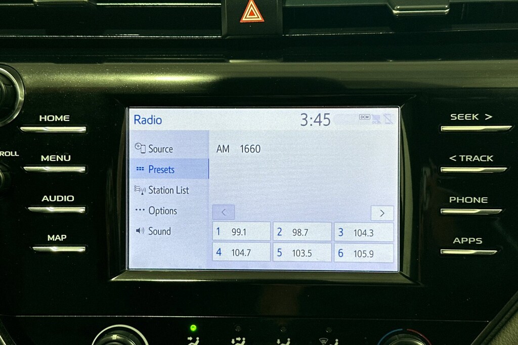 4-Wheel Disc Brakes, 6 Speakers, 7.5J x 17" Alloy Wheels, ABS brakes, Air Conditioning, Alloy wheels, AM/FM radio, Apple CarPlay, Auto High-beam Headlights, Brake assist, Bumpers: body-color, Delay-off headlights, Driver door bin, Driver vanity mirror, Dual front impact airbags, Dual front side impact airbags, Electronic Stability Control, Emergency communication system: Safety Connect, Exterior Parking Camera Rear, Fabric Seat Trim, Four wheel independent suspension, Front anti-roll bar, Front Bucket Seats, Front Center Armrest, Front reading lights, Fully automatic headlights, Illuminated entry, Knee airbag, Low tire pressure warning, Occupant sensing airbag, Outside temperature display, Overhead airbag, Overhead console, Panic alarm, Passenger door bin, Passenger vanity mirror, Power door mirrors, Power driver seat, Power steering, Power windows, Radio data system, Radio: Entune 3.0 Audio w/App Suite, Rear anti-roll bar, Rear reading lights, Rear seat center armrest, Rear side impact airbag, Rear window defroster, Remote keyless entry, Security system, Speed control, Speed-sensing steering, Split folding rear seat, Steering wheel mounted audio controls, Tachometer, Telescoping steering wheel, Tilt steering wheel, Traction control, Trip computer, and Variably intermittent wipers.
