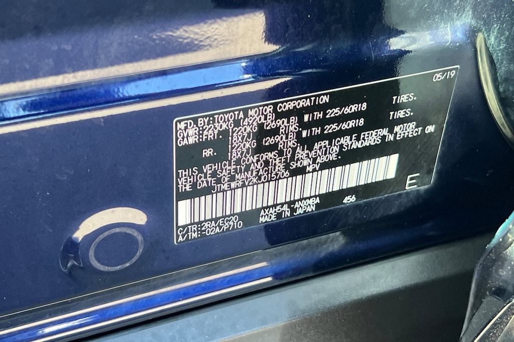 4-Wheel Disc Brakes, 6 Speakers, ABS brakes, Air Conditioning, Alloy wheels, AM/FM radio: SiriusXM, Apple CarPlay, Auto High-beam Headlights, Auto-dimming Rear-View mirror, Automatic temperature control, Axle Ratio: TBD, Brake assist, Bumpers: body-color, Delay-off headlights, Driver door bin, Driver vanity mirror, Dual front impact airbags, Dual front side impact airbags, Electronic Stability Control, Emergency communication system: Safety Connect, Four wheel independent suspension, Front anti-roll bar, Front Bucket Seats, Front Center Armrest, Front dual zone A/C, Front fog lights, Front reading lights, Fully automatic headlights, Garage door transmitter: HomeLink, Heated door mirrors, Heated Front Seats, Heated front seats, Illuminated entry, Knee airbag, Leather Shift Knob, Low tire pressure warning, Occupant sensing airbag, Outside temperature display, Overhead airbag, Overhead console, Panic alarm, Passenger door bin, Passenger vanity mirror, Power door mirrors, Power driver seat, Power Liftgate, Power moonroof, Power steering, Power windows, Radio data system, Radio: Entune 3.0 Audio Plus, Rear anti-roll bar, Rear seat center armrest, Rear window defroster, Rear window wiper, Remote keyless entry, Roof rack: rails only, Security system, SofTex Seat Trim (EC), Speed control, Speed-sensing steering, Split folding rear seat, Spoiler, Steering wheel mounted audio controls, Telescoping steering wheel, Tilt steering wheel, Traction control, Trip computer, Turn signal indicator mirrors, Variably intermittent wipers, and Wheels: 18" x 7.0J Black-Painted Aluminum Alloy.