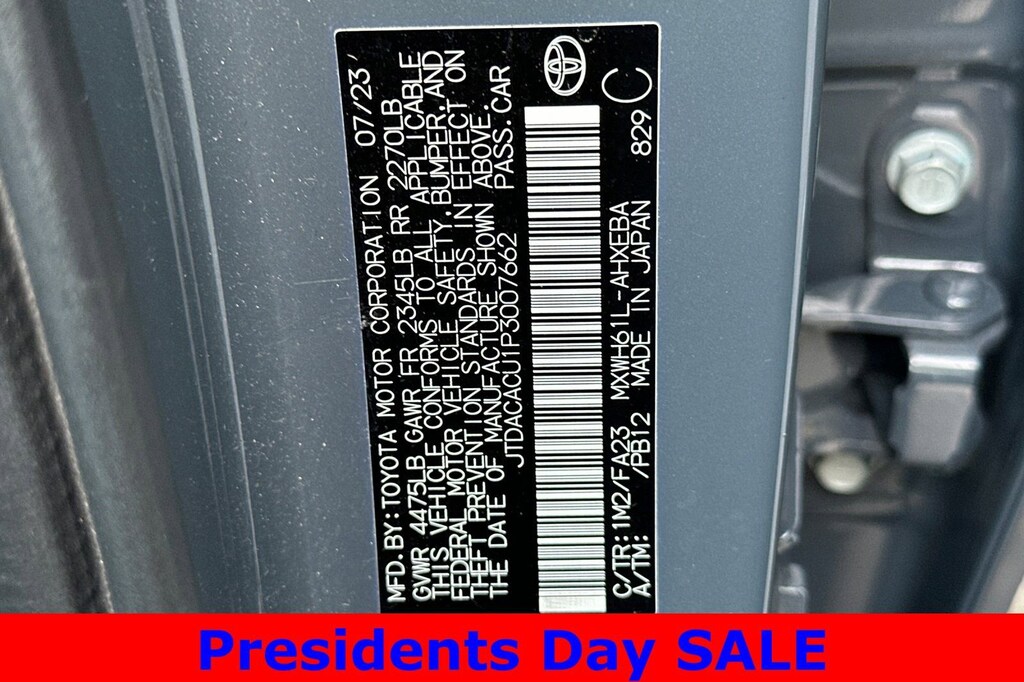 - JTDACACU1P3007662