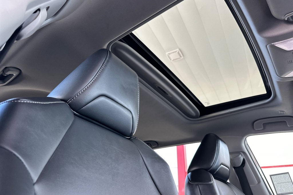 3 Spoke Leather Steering Wheel, 4-Wheel Disc Brakes, 6 Speakers, ABS brakes, Air Conditioning, Alloy wheels, AM/FM radio: SiriusXM, Auto High-beam Headlights, Automatic temperature control, Axle Ratio: 3.177, Brake assist, Bumpers: body-color, Delay-off headlights, Driver door bin, Driver vanity mirror, Dual front impact airbags, Dual front side impact airbags, Electronic Stability Control, Emergency communication system: Safety Connect (10-year trial), Exterior Parking Camera Rear, Four wheel independent suspension, Front anti-roll bar, Front Bucket Seats, Front Center Armrest, Front Door Smart Key System w/Push Button Start, Front dual zone A/C, Front reading lights, Fully automatic headlights, Heated door mirrors, Illuminated entry, Knee airbag, Leather Shift Knob, Low tire pressure warning, Occupant sensing airbag, Outside temperature display, Overhead airbag, Overhead console, Panic alarm, Passenger door bin, Passenger vanity mirror, Power door mirrors, Power driver seat, Power Liftgate, Power moonroof, Power steering, Power windows, Radio data system, Radio: AM/FM/XM Audio System, Rear anti-roll bar, Rear seat center armrest, Rear window defroster, Rear window wiper, Remote keyless entry, SofTex Seat Trim, Speed control, Speed-sensing steering, Split folding rear seat, Spoiler, Steering wheel mounted audio controls, Tachometer, Telescoping steering wheel, Tilt steering wheel, Traction control, Trip computer, Turn signal indicator mirrors, Variably intermittent wipers, and Wheels: 19" 5-Spoke Silver Alloy.