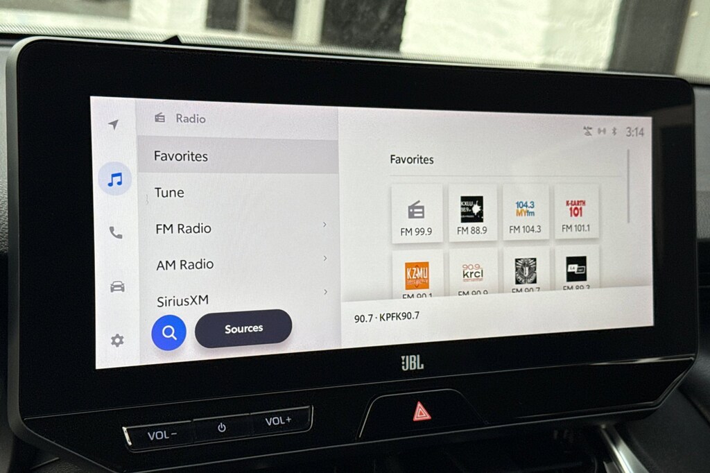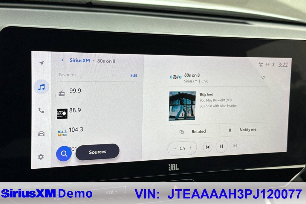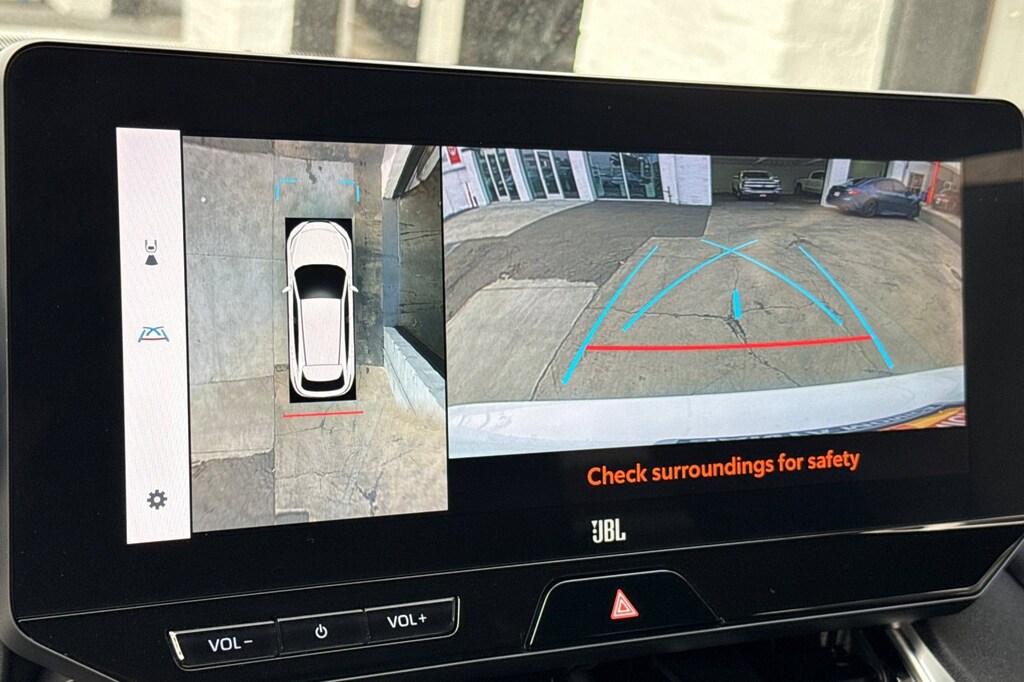 4-Wheel Disc Brakes, 9 Speakers, ABS brakes, Air Conditioning, Alloy wheels, AM/FM radio: SiriusXM, Apple CarPlay/Android Auto, Auto High-beam Headlights, Auto-dimming Rear-View mirror, Automatic temperature control, Axle Ratio: TBD, Brake assist, Bumpers: body-color, Chrome wheels, Driver door bin, Driver vanity mirror, Dual front impact airbags, Dual front side impact airbags, Electronic Stability Control, Emergency communication system: Safety Connect (1-year trial), Four wheel independent suspension, Front anti-roll bar, Front Bucket Seats, Front Center Armrest, Front dual zone A/C, Front fog lights, Front reading lights, Fully automatic headlights, Garage door transmitter: HomeLink, Heads-Up Display, Heated & Ventilated Front Bucket Seats, Heated front seats, Heated steering wheel, Illuminated entry, Knee airbag, Leather Shift Knob, Leather steering wheel, Low tire pressure warning, Memory seat, Navigation system: Dynamic Navigation (3-year trial), Occupant sensing airbag, Outside temperature display, Overhead airbag, Overhead console, Panic alarm, Passenger door bin, Passenger vanity mirror, Perforated SofTex Seat Trim, Power door mirrors, Power driver seat, Power Liftgate, Power passenger seat, Power steering, Power windows, Radio data system, Radio: Premium Audio w/Dynamic Navigation & JBL, Rain sensing wipers, Rear anti-roll bar, Rear seat center armrest, Rear window defroster, Rear window wiper, Remote keyless entry, Roof rack: rails only, Speed control, Speed-sensing steering, Split folding rear seat, Spoiler, Steering wheel mounted audio controls, Telescoping steering wheel, Tilt steering wheel, Traction control, Trip computer, Turn signal indicator mirrors, Variably intermittent wipers, Ventilated front seats, and Wheels: 7 x 19" Alloy.