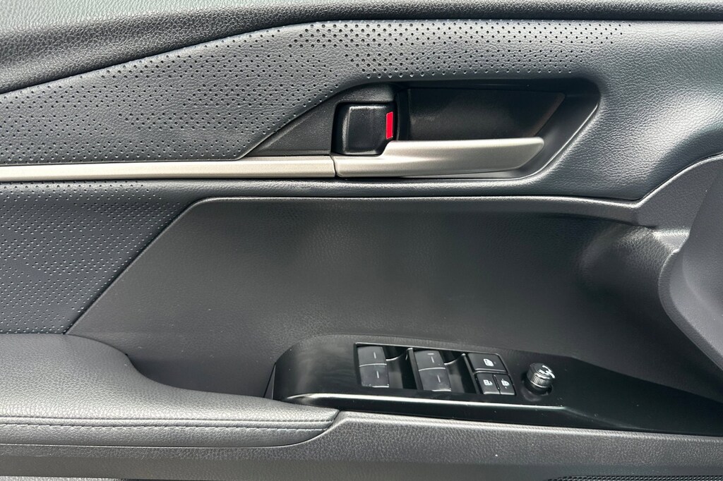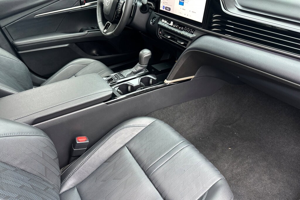 ABS brakes, Active Cruise Control, Alloy wheels, Electronic Stability Control, Front dual zone A/C, Heated door mirrors, Heated Front Bucket Seats, Heated front seats, Illuminated entry, Leather Seat Trim, Low tire pressure warning, Remote keyless entry, Traction control. ABS brakes, Active Cruise Control, Alloy wheels, Electronic Stability Control, Front dual zone A/C, Heated door mirrors, Heated Front Bucket Seats, Heated front seats, Illuminated entry, Leather Seat Trim, Low tire pressure warning, Remote keyless entry, Traction control, 4-Wheel Disc Brakes, 6 Speakers, Air Conditioning, AM/FM radio: SiriusXM, Apple CarPlay/Android Auto, Auto High-beam Headlights, Auto-dimming Rear-View mirror, Automatic temperature control, Brake assist, Bumpers: body-color, Delay-off headlights, Driver door bin, Driver vanity mirror, Dual front impact airbags, Dual front side impact airbags, Emergency communication system: Safety Connect (up to 10-year trial subscription), Exterior Parking Camera Rear, Four wheel independent suspension, Front anti-roll bar, Front Bucket Seats, Front Center Armrest, Front reading lights, Fully automatic headlights, Garage door transmitter: HomeLink, Heated steering wheel, Knee airbag, Leather Shift Knob, Leather steering wheel, Occupant sensing airbag, Outside temperature display, Overhead airbag, Overhead console, Panic alarm, Passenger door bin, Passenger vanity mirror, Power door mirrors, Power driver seat, Power passenger seat, Power steering, Power windows, Radio data system, Radio: Toyota Audio Multimedia w/12.3" Touchscreen, Rear anti-roll bar, Rear reading lights, Rear seat center armrest, Rear side impact airbag, Rear window defroster, Security system, Speed control, Speed-sensing steering, Split folding rear seat, Spoiler, Steering wheel mounted audio controls, Telescoping steering wheel, Tilt steering wheel, Trip computer, Turn signal indicator mirrors, Variably intermittent wipers, and Wheels: 19" Smoke Gray & Black-Finished Alloy.