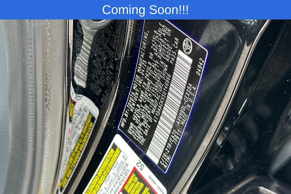 Camry SE, 4D Sedan, 2.5L 4-Cylinder 16V DOHC, eCVT, FWD, Midnight Black Metallic, Black Premium Synthetic, Alloy wheels, Apple CarPlay/Android Auto, Exterior Parking Camera Rear, Remote keyless entry, Split folding rear seat, Spoiler.