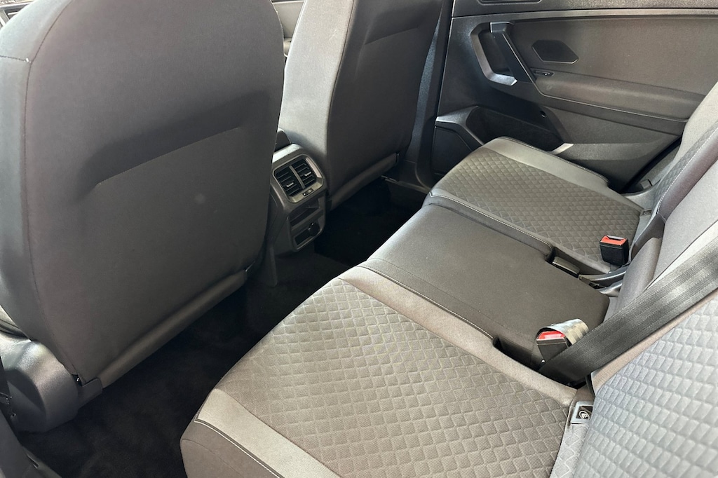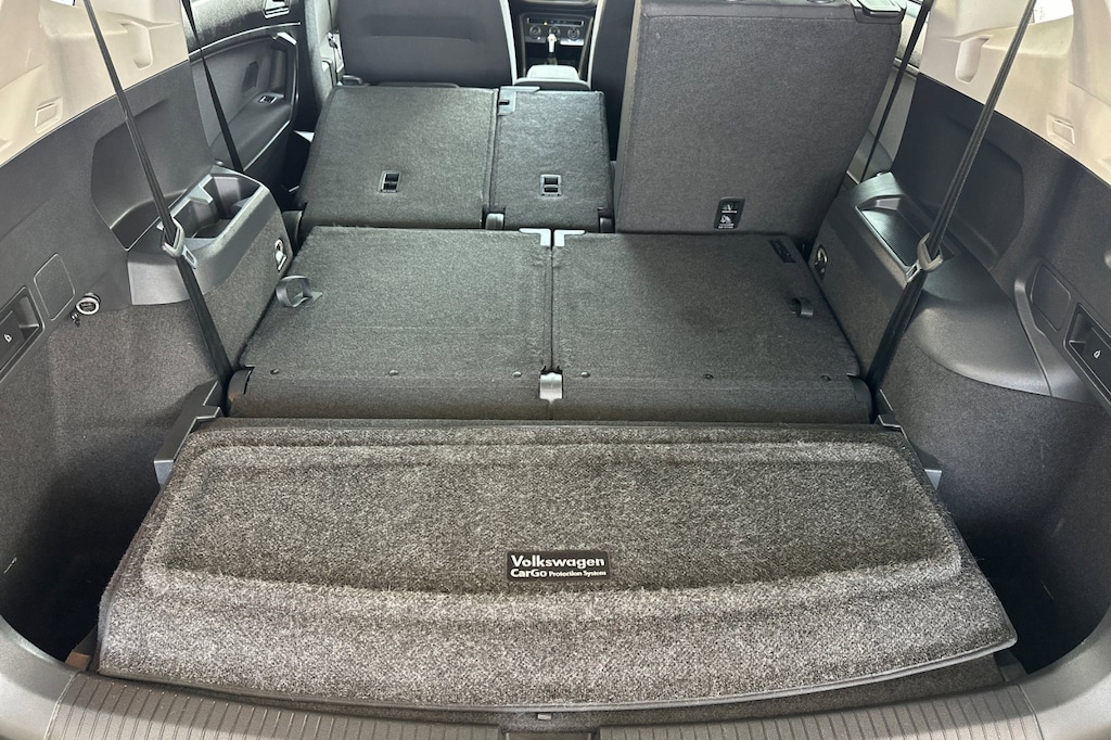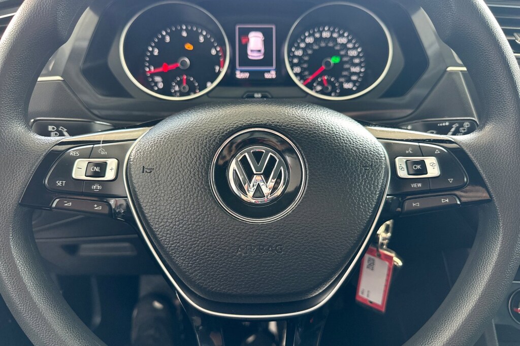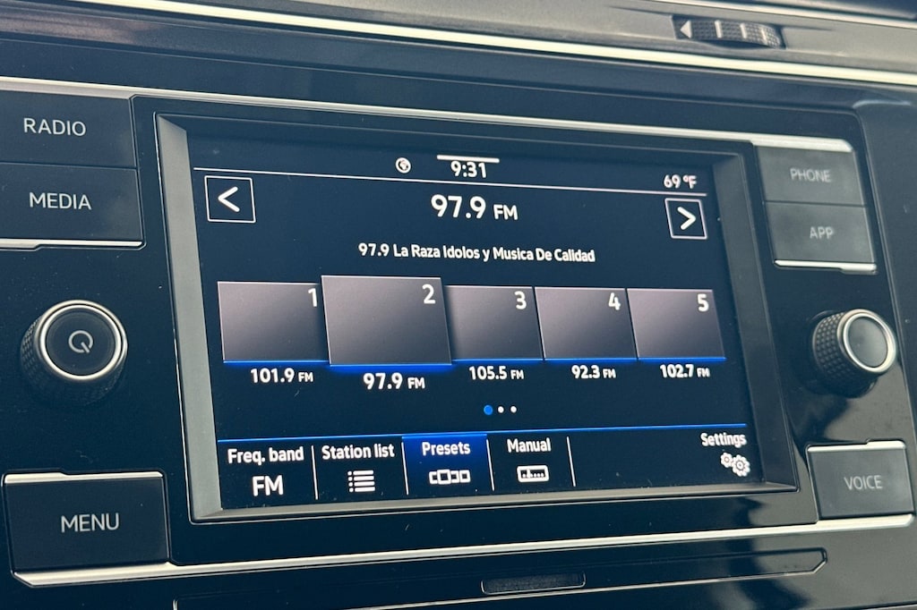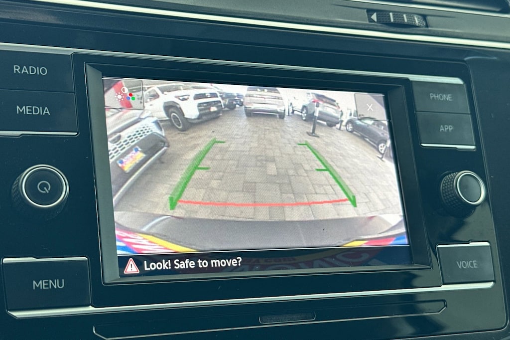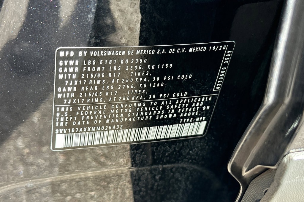 3.33 Axle Ratio, 3rd row seats: bench, 4-Wheel Disc Brakes, 4-Wheel Independent Suspension, 6 Speakers, ABS brakes, Air Conditioning, Alloy wheels, AM/FM radio, Brake assist, Bumpers: body-color, Cloth Seating Surfaces, Compass, Delay-off headlights, Driver door bin, Driver vanity mirror, Dual front impact airbags, Dual front side impact airbags, Electronic Stability Control, Emergency communication system: VW Car-Net services (capabilities require enrollment or subscription), Exterior Parking Camera Rear, Forward collision: FCW w/Autonomous Emergency Braking mitigation, Four wheel independent suspension, Front anti-roll bar, Front Bucket Seats, Front Center Armrest, Front reading lights, Fully automatic headlights, Heated door mirrors, Illuminated entry, Low tire pressure warning, Occupant sensing airbag, Outside temperature display, Overhead airbag, Overhead console, Panic alarm, Passenger door bin, Passenger vanity mirror, Power door mirrors, Power steering, Power windows, Radio data system, Radio: Composition Color AM/FM, Rear anti-roll bar, Rear seat center armrest, Rear window defroster, Rear window wiper, Remote keyless entry, Roof rack: rails only, Speed control, Speed-sensing steering, Split folding rear seat, Spoiler, Steering wheel mounted audio controls, Tachometer, Telescoping steering wheel, Tilt steering wheel, Traction control, Trip computer, Turn signal indicator mirrors, Variably intermittent wipers, and Wheels: 17" Multi-Spoke 2-Tone Alloy.
