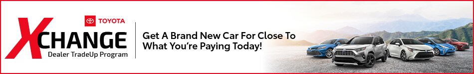 If you currently own a Toyota, you are eligible for our Toyota Vehicle Exchange Program. Contact our Vehicle exchange specialists atĀ Ā Ā Ā Ā Ā (323) 378-3365 or Fill out the form below to find out if you qualify.